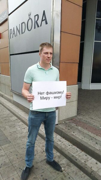Илья Никитин встал днем 20 сентября рядом с центральном входом торгового центра на пересечении улиц Красная и Северная, держа в руках белый лист бумаги с текстом: «Нет фашизму! Миру — мир!». В скором времени к нему подошли полицейские, не задерживая пикетчика, но и не давая уйти.