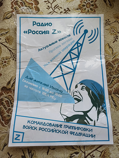 Они раздавали свою газету — «Изюм Z», «Харьков X», радио «Изюм Z». На наше радио поставили глушилки. Их радио три песни проиграет — и пропаганда, и так по кругу. Что Европа от нас отвернулась, оружие давать не будет. Наступательные действия русских очень эффективны. Порядка 20 000 погибших украинцев в месяц. То есть они хотят сказать, что за полгода у нас 120 000 погибших. Посмотрел, как они наступают, как они своих людей не жалеют, как они везут «двухсотых» — те просто сверху на БТР валяются.