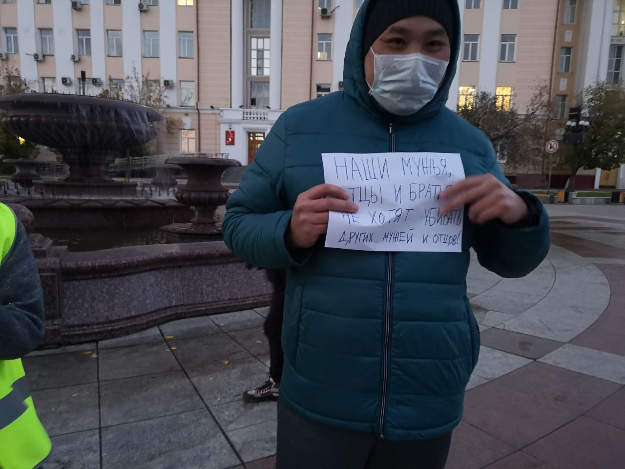 "Наши мужья, отцы и братья не хотят убивать других мужей и отцов", "Нет войне! Нет могилизации", говорилось на плакатах жителей Улан-Удэ.