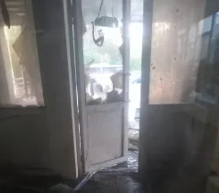 The photos published by the news outlet show that the entrance door glass was shattered and that there is soot near the entrance. Nesluhi.rf points out that police are working on the scene.