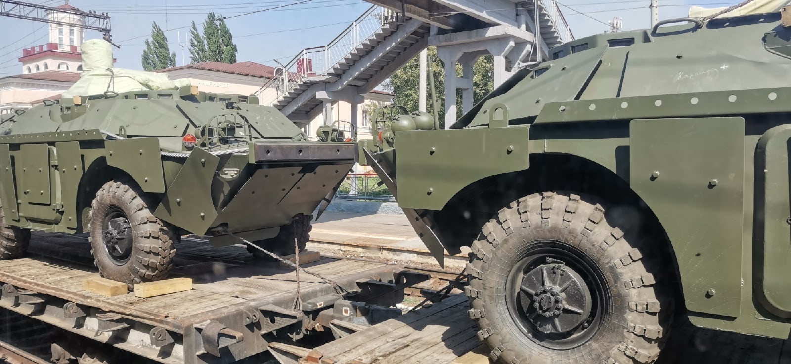 Этот снимок, как установило Радио Свобода, был сделан пассажиром из окна следующего на север поезда все в том же Каменске-Шахтинском 30 августа. По фотографиям видно, что машины новые. Как следует из многочисленных публикаций российской прессы, БРДМ-2МС предназначались в основном на экспорт и поставлялись в такие страны, как Киргизия, Мьянма, Лаос, Таджикистан и Сербия. В апреле 2022 года, уже после начала российского вторжения в Украину, эти машины были замечены в Сирии на фотографиях празднований Дня независимости этой страны.