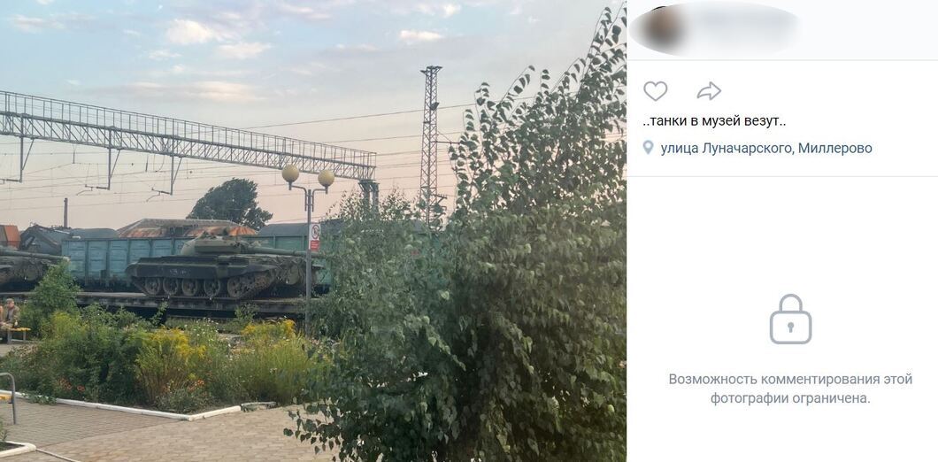 Ответ на вопрос, зачем России приходится уже 5 месяцев расконсервировать и перебрасывать в Украину в буквальном смысле музейную технику, можно найти в другом посте во "ВКонтакте", на фото, опубликованном всего 4 дня назад, 18 сентября. На нем видна платформа с танком, который эксперты Conflict Intelligence Team идентифицировали по просьбе Радио Свобода как Т-80БВ, одну из промежуточных модификаций Т-80, поступившую на вооружение советской армии "всего" 37 лет назад, в 1985 году.