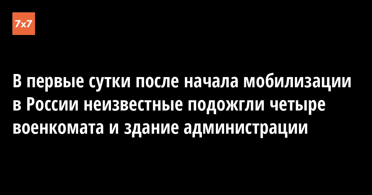 В первые сутки после начала мобилизации в России неизвестные подожгли четыре военкомата и здание администрации