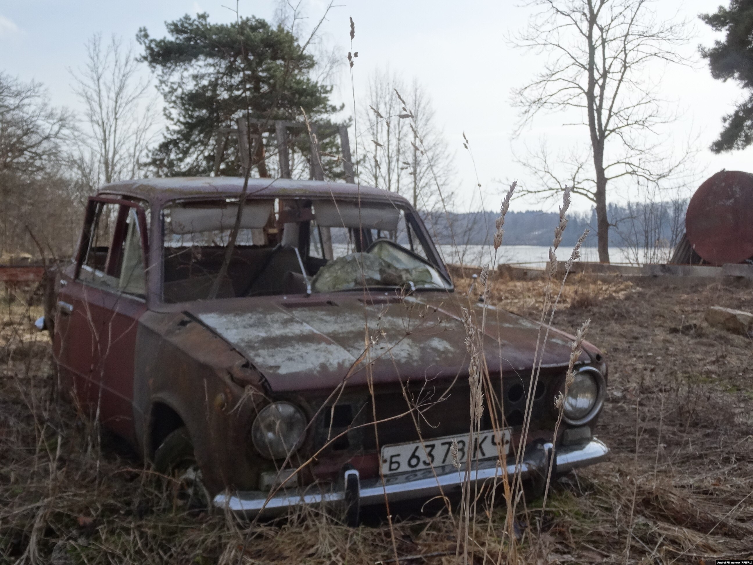Во дворе дома догнивают вишневые "Жигули" с советскими номерами. Андрей объясняет, что буква К на номерном знаке означает Камчатка. Рассказывает, что машину он купил в 80-х годах в Латвии, но не мог поставить ее на учет, потому что не имел латвийской прописки. Выручил знакомый начальник ГАИ из Петропавловска-Камчатского: