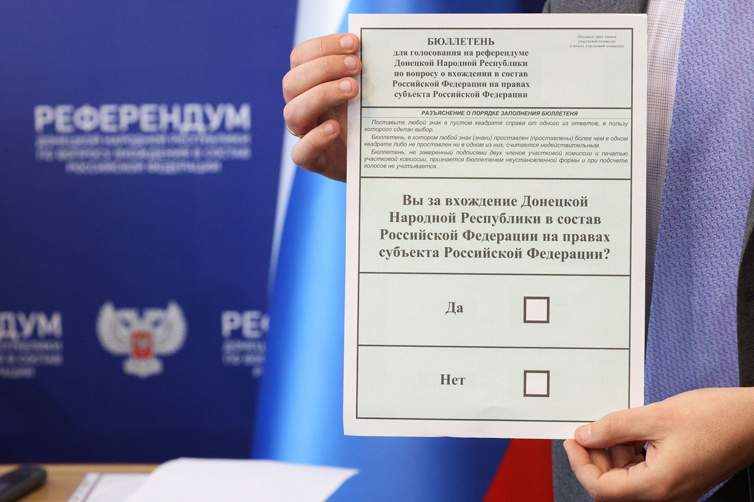 По данным одного из близких к Кремлю собеседников «Медузы», работают москвичи и в самом Донбассе. «Голосование» в ДНР якобы курирует заместитель главы департамента территориальных органов мэрии Юлия Марьясова (она организовала работу политтехнологов в Москве на выборах в Госдуму в 2021 году и на выборах московских муниципальных депутатов в 2022-м). Однако источник, близкий к руководству города, опроверг эти сведения в разговоре с «Медузой» — и подчеркнул, что Марьясова в подготовке «референдумов» не участвует: «Все бегают, жопа в огне, но на места никто из наших не поедет, помогают удаленно». В мэрии на запрос «Медузы» не ответили.