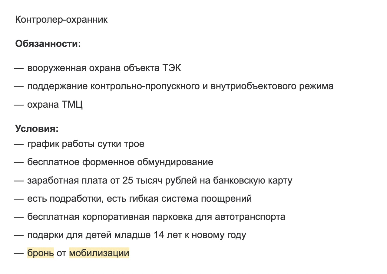 «Бумага» обнаружила, что позднее из описания вакансии убрали строку о защите от призыва. В пресс-службе Headhunter по Северо-Западному региону сказали «Бумаге», что текст вакансии, скорее всего, исправили сотрудники кадровой службы компании-работодателя.