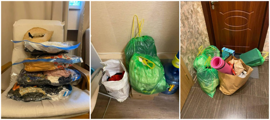 Несколько месяцев пара обдумывала вариант, когда им срочно придётся уехать, поэтому некоторые громоздкие вещи, вроде компьютера и велосипедов, продали заранее. С собой собрали только необходимое. То, что перевезти не получится, оставили в съёмной квартире или отвезли к друзьям.
