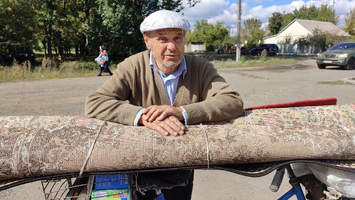 Пока мы говорим с Николаем, мимо на велосипеде пожилой мужчина везет ковер. "О, а с ним вообще абсурдная история про "мертвые души" приключилась, - говорит Николай. - Миша, иди сюда, расскажи, что с тобой было".