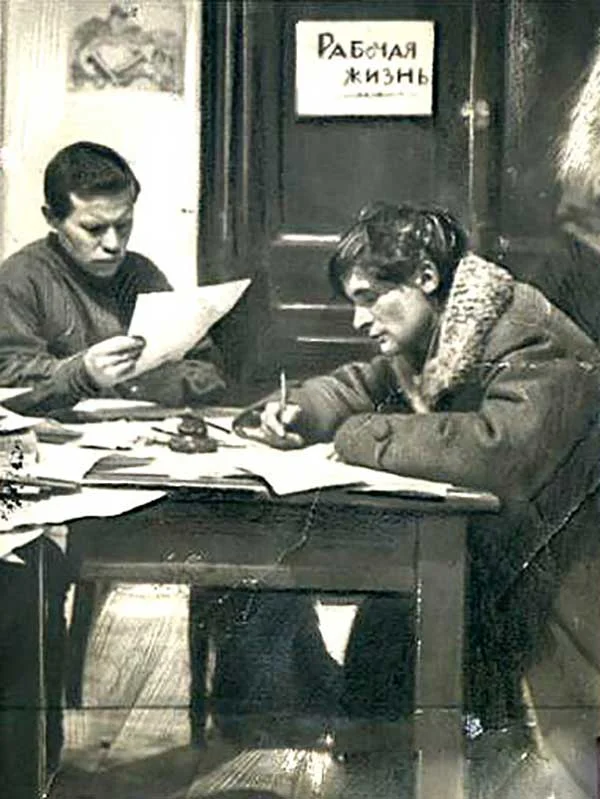 «Ленин умер — ленинизм живет» — это его строка. «Сталинская Конституция закрепила победы социалистической революции и все ее великие завоевания. На основании Сталинской Конституции мы, граждане РСФСР, будем выбирать наших представителей в Верховный Совет». Тоже он. О матросе Железнякове, разогнавшем Учредительное собрание и убитом в момент, когда высунулся из бойницы бронепоезда и стрелял сразу из двух пистолетов в двух руках, он пишет с симпатией. Он был с ним знаком. «Молодость моей Советской Родины… всей душой коммунистом… против врагов новой жизни страны» —