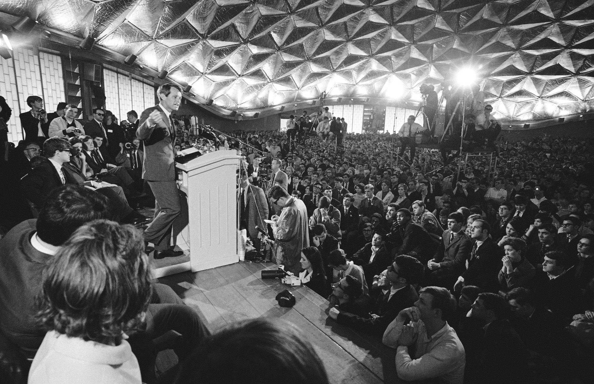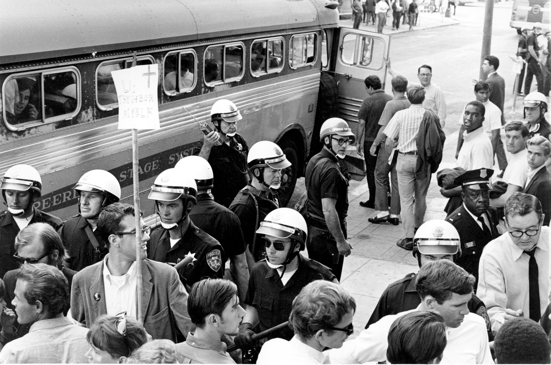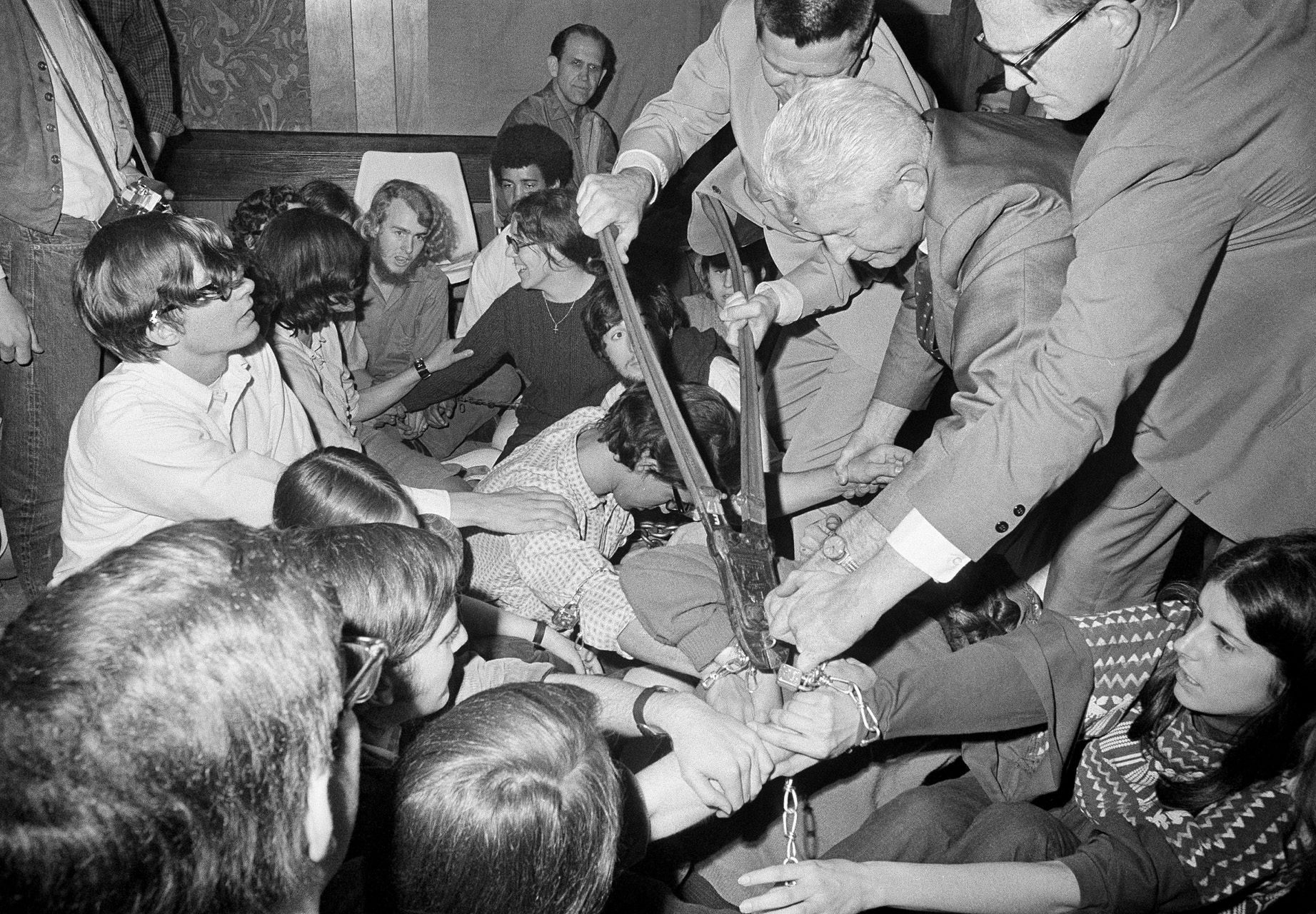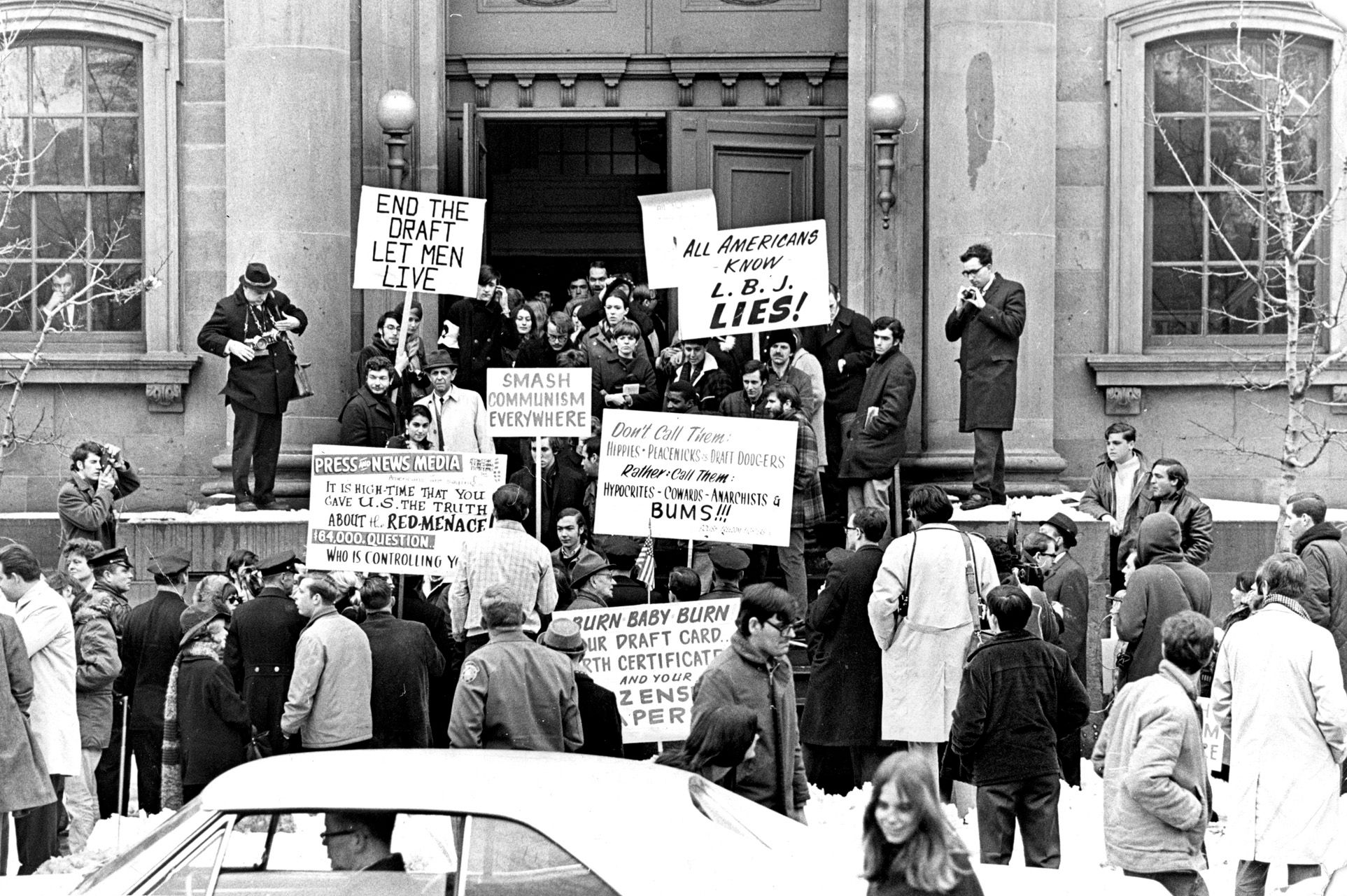 В России 21 сентября была объявлена мобилизация. Точное число подлежащих призыву на войну неизвестно. По неофициальным данным, речь может идти более чем о миллионе человек. После объявления мобилизации в России начались акции протеста, которые жестко разогнала полиция. Только на первых акциях, по данным «ОВД-Инфо», было задержано более 1300 человек. Почти 60 лет назад, в 1964 году, в США начались масштабные акции протеста против призыва и войны во Вьетнаме, они продолжались несколько лет и оказали огромное влияние на общество, культуру, искусство и политику — как в США, так и во всем остальном мире. Посмотрите, как это было.