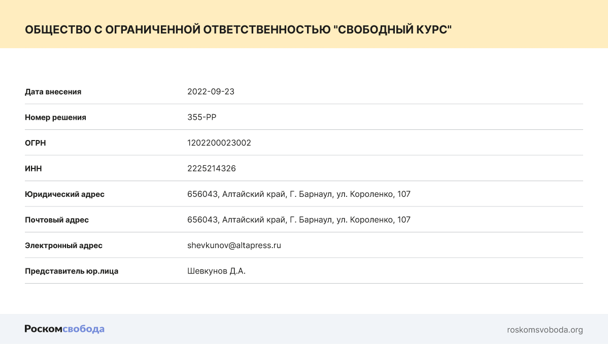 «Алтапресс» внесён в реестр организаторов распространения информации