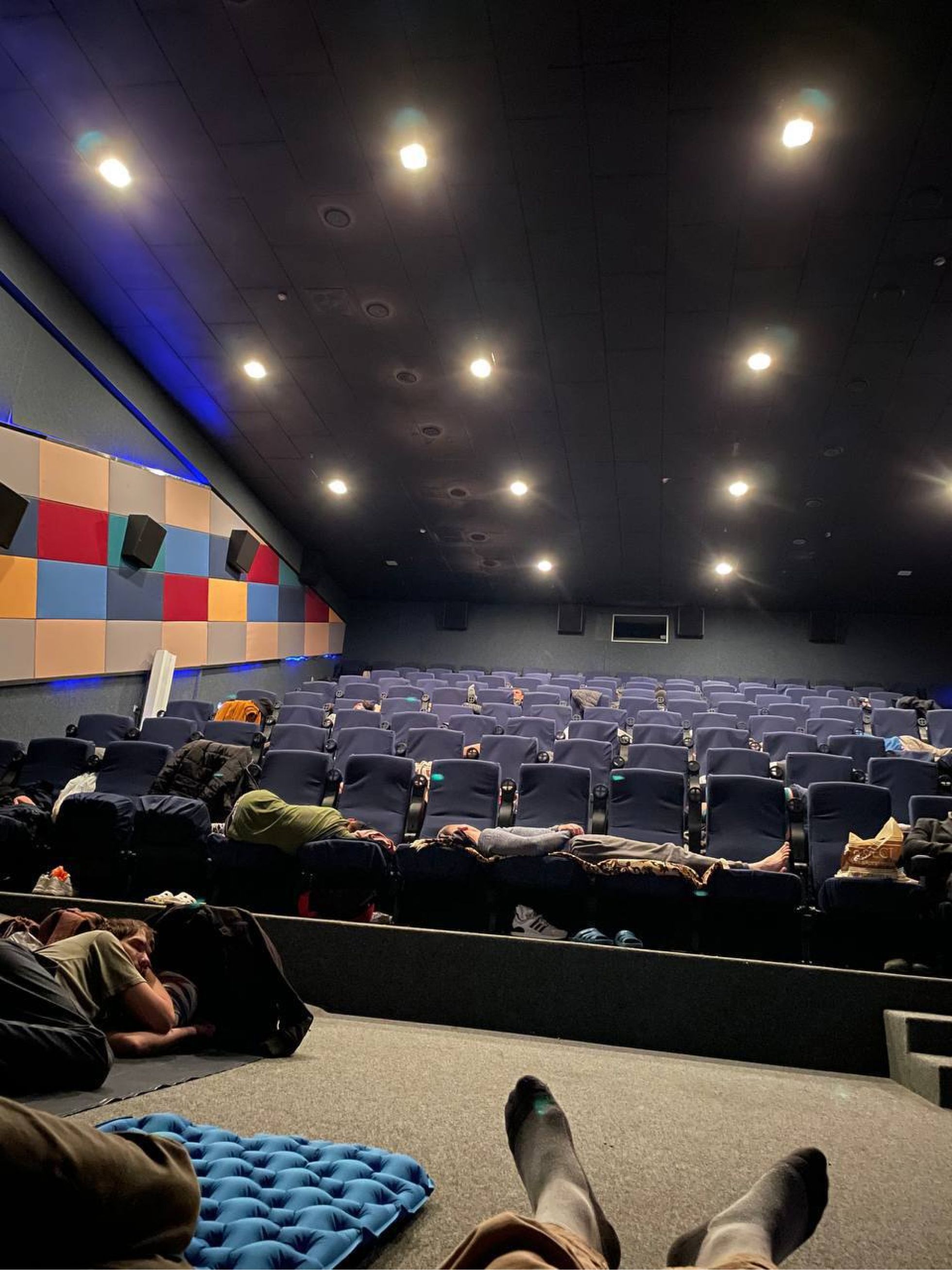 Кинотеатр Cinema Park в Уральске, где ночуют россияне, которые не смогли найти жилье. BBC