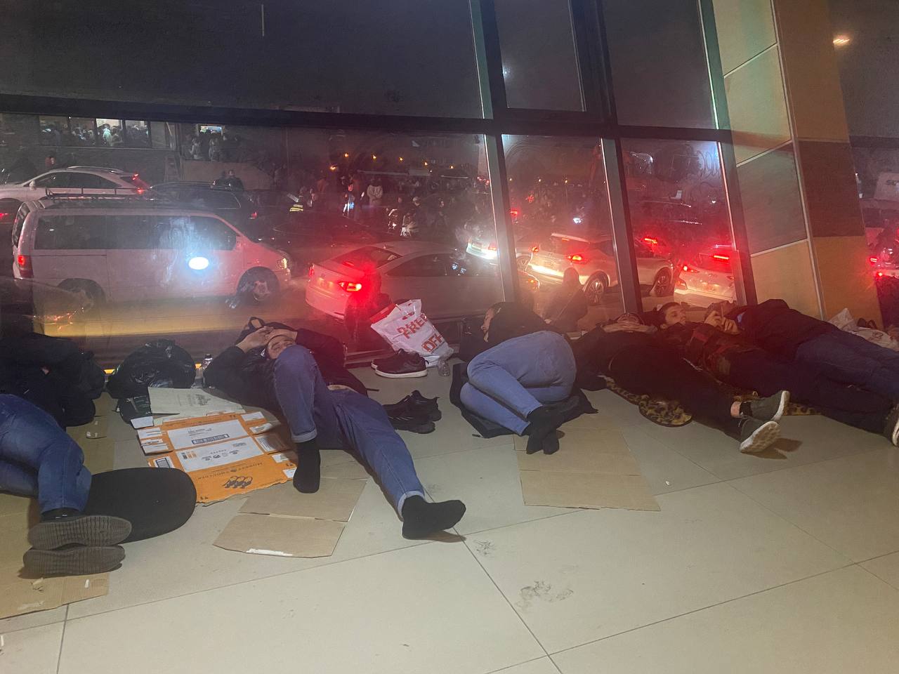 В список добавляют примерно по 20 человек и потихоньку подают. Минут 40 назад я был в 65-м (то есть всего 65 списков по 20–22 человека — прим. Paper Kartuli), недавно прошел [на опрос] 44-й. Здесь некоторые пацаны говорили, что они двое суток живут. Я так понял, здесь нет еды.