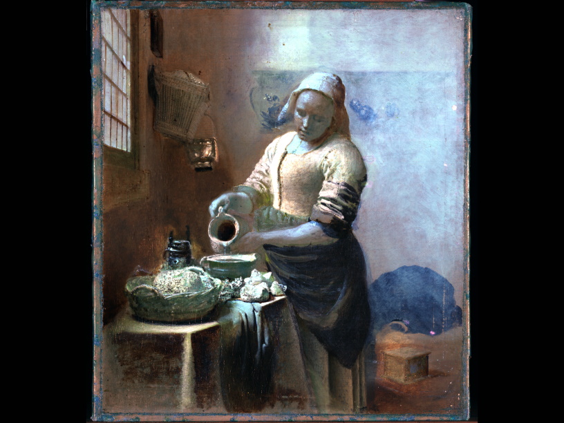 Именно в SWIR-изображении были обнаружены два объекта, которые Вермеер закрасил перед тем, как закончить работу над «Молочницей»: вешалка для кувшинов с кувшинами, свисающими за головой женщины, и корзина для углей у ее ног. Присутствие каких-то изображений в этих участках картины было отмечено на предыдущих рентгеновских снимках, но старая технология не могла определить, что это было.