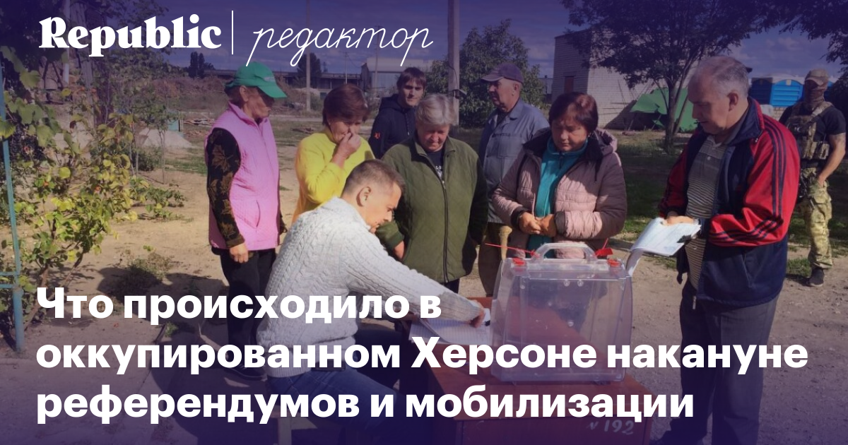 В четырех областях Украины подконтрольные Москве власти проводят «референдумы» о вхождении в состав России. Голосование продлится пять дней — с 23 по 27 сентября. Украинские телеграм-каналы публикуют видеокадры, на которых урны для голосования привозят во дворы и на рынки, а сотрудники участковых комиссий обходят квартиры местных жителей в сопровождении вооруженных военных. На Западе «референдумы», как и объявленную в России мобилизацию, называют новым витком эскалации войны в Украине. Там считают, что Кремль стремится «легализовать оккупацию», а свободное волеизъявление на захваченных территориях — невозможно. Фарида Курбангалеева поговорила с двумя жителями оккупированного Херсона и выяснила, что они думают о «референдуме», мобилизации, обстановке в городе и своем будущем.