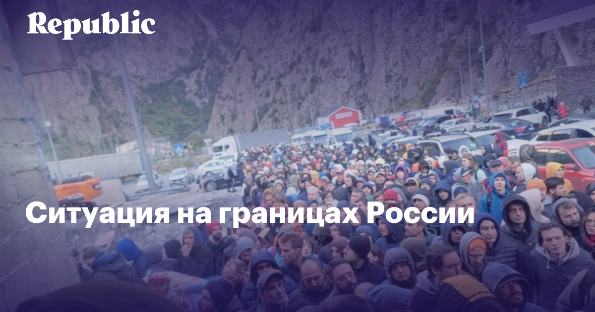 После объявленной Путиным «частичной» мобилизации многие россияне пытаются уехать из страны. Ситуация на трех границах (российско-грузинской, российско-казахстанской и российско-финской) к 18:30 26 сентября.