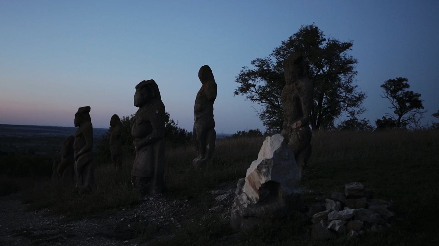 На вершине горы стоят люди с телефонами и пытаются поймать сеть. Кажется, что и каменные бабы вышли сюда когда-то ловить сигнал — и ждут его до сих пор. С Кременца открывается невероятный вид на реку. Но люди как будто не замечают этого. Они где-то далеко — там, где их близкие.