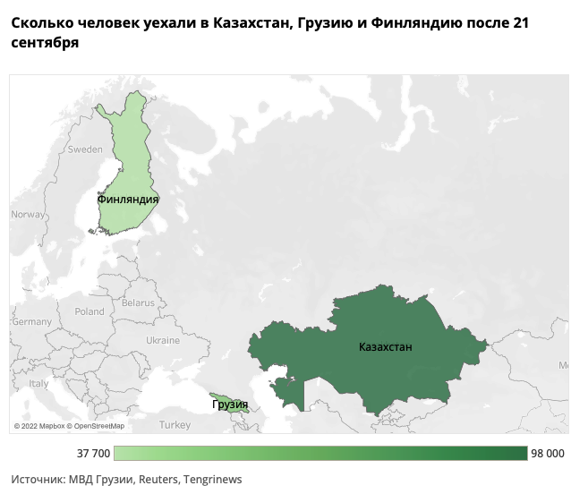 Сколько россиян уехали в Грузию, Казахстан и Финляндию после объявления мобилизации?