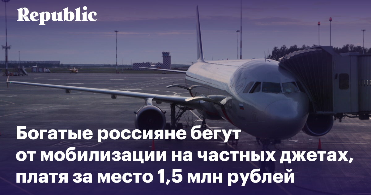 Богатые россияне, чтобы спастись от объявленной Путиным мобилизации на войну, улетают из страны на частных самолетах. За одно место в джете они платят от 1,2 млн до 1,5 млн рублей, но даже при такой высокой цене на всех желающих мест не хватает, пишет The Guardian.
