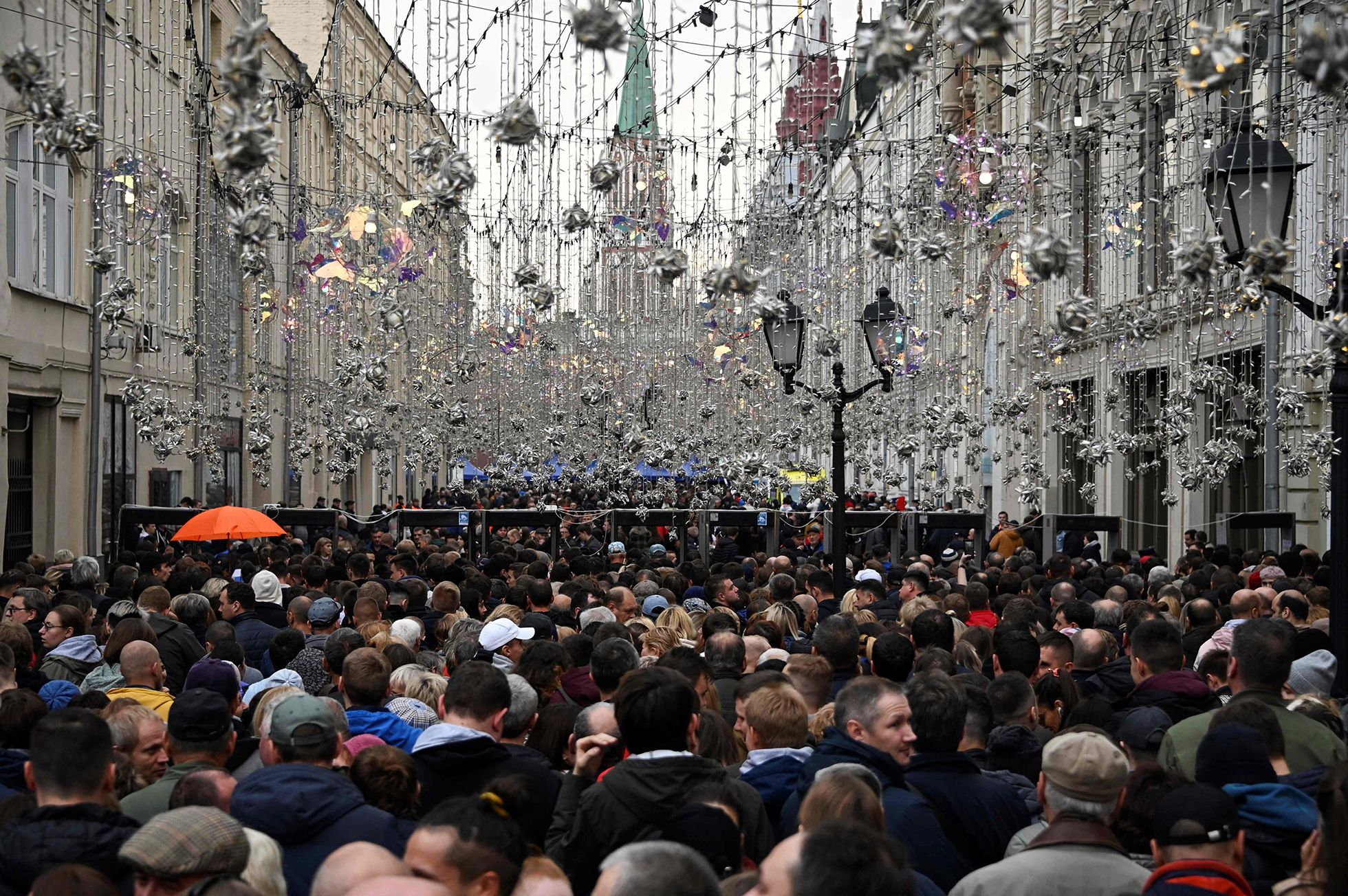 Первый кордон пройден. Но прямо перед входом на Красную площадь (со стороны Исторического музея) снова досмотр и снова очередь. Она почти не движется — за 40 минут удается пройти буквально пару метров. Люди стоят очень плотно.
