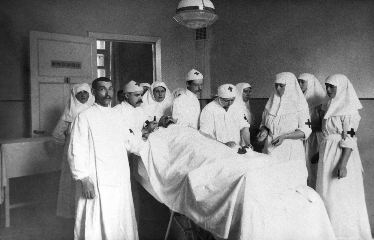 Затем они стали выполнять и более серьезные медицинские процедуры. Великая княжна Ольга Николаевна уже 19 сентября 1914 года записала в своем дневнике: «Была операция Корженевскому 102-го Вятского полка… убирали гнилые кости из левой кисти. Нас всех без конца снимал фотограф».