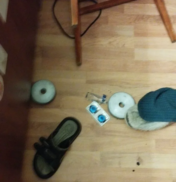 Meanwhile, the policemen were ransacking all rooms in the flat except for the kitchen. Alexandra Popova says that they found a box of condoms and scattered them around the flat. The officers also went through their personal things, pushed stuff off the shelves, and broke an Xbox console. They made Kamardin put on several condoms on the dumbbell bar to avoid physical injuries, attorney Leonid Solovyev relays the words of his client. According to Popova, the search was carried out without any witnesses at first, which is against the law, but they were later told to come in by the investigator. Before the witnesses entered the flat, the officers got rid of all the evidence of torture: they washed Kamardin’s face, washed the blood off the floor and the furniture, and put away the dumbbell bar.