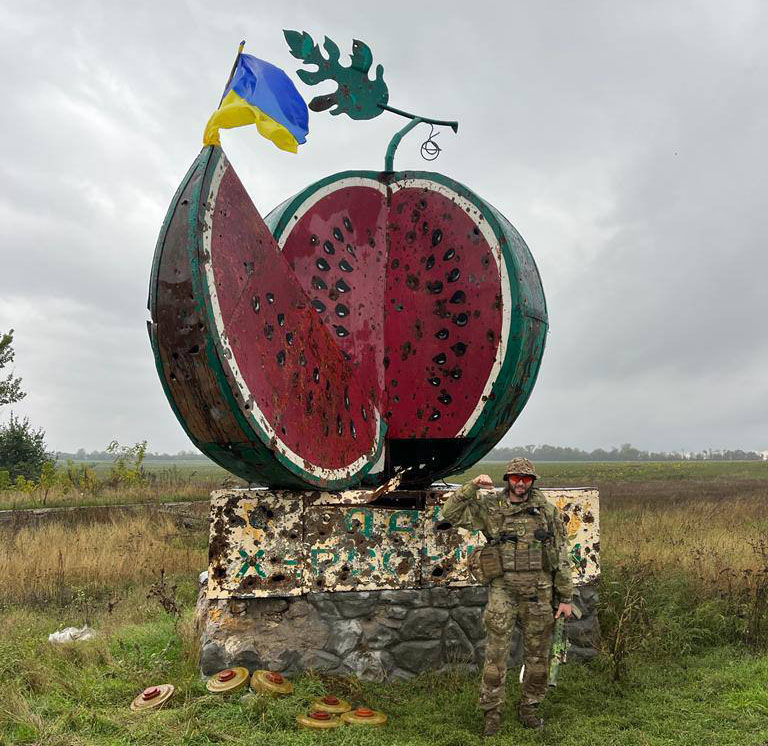«Арбуз» — это памятник «Дары Херсонщины», расположенный около села Оскоровка на трассе Днепр — Херсон. На следующий день появились фото и видео украинских военных, снятые рядом с этим памятником. Днем военкор Роман Сапоньков сообщил, что российским военным пришлось оставить села Оскоровка и Золотая Балка. «Я понимаю, что после Лимана и харьковской катастрофы такие события на фронте крайне неприятны, но не стоит впадать в панику», — успокаивал он.