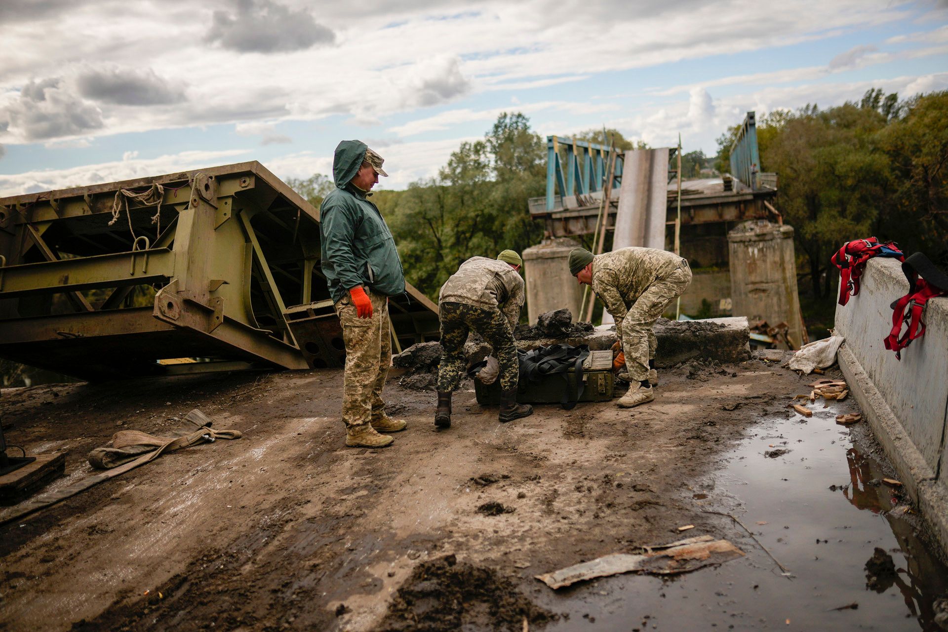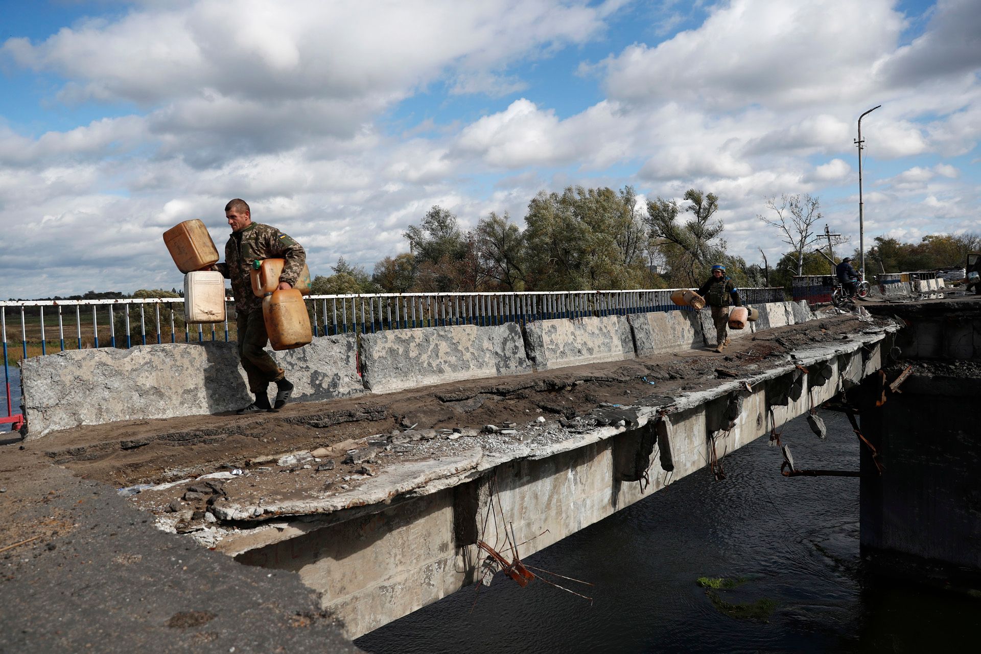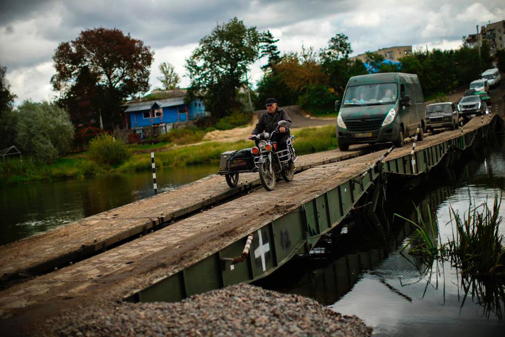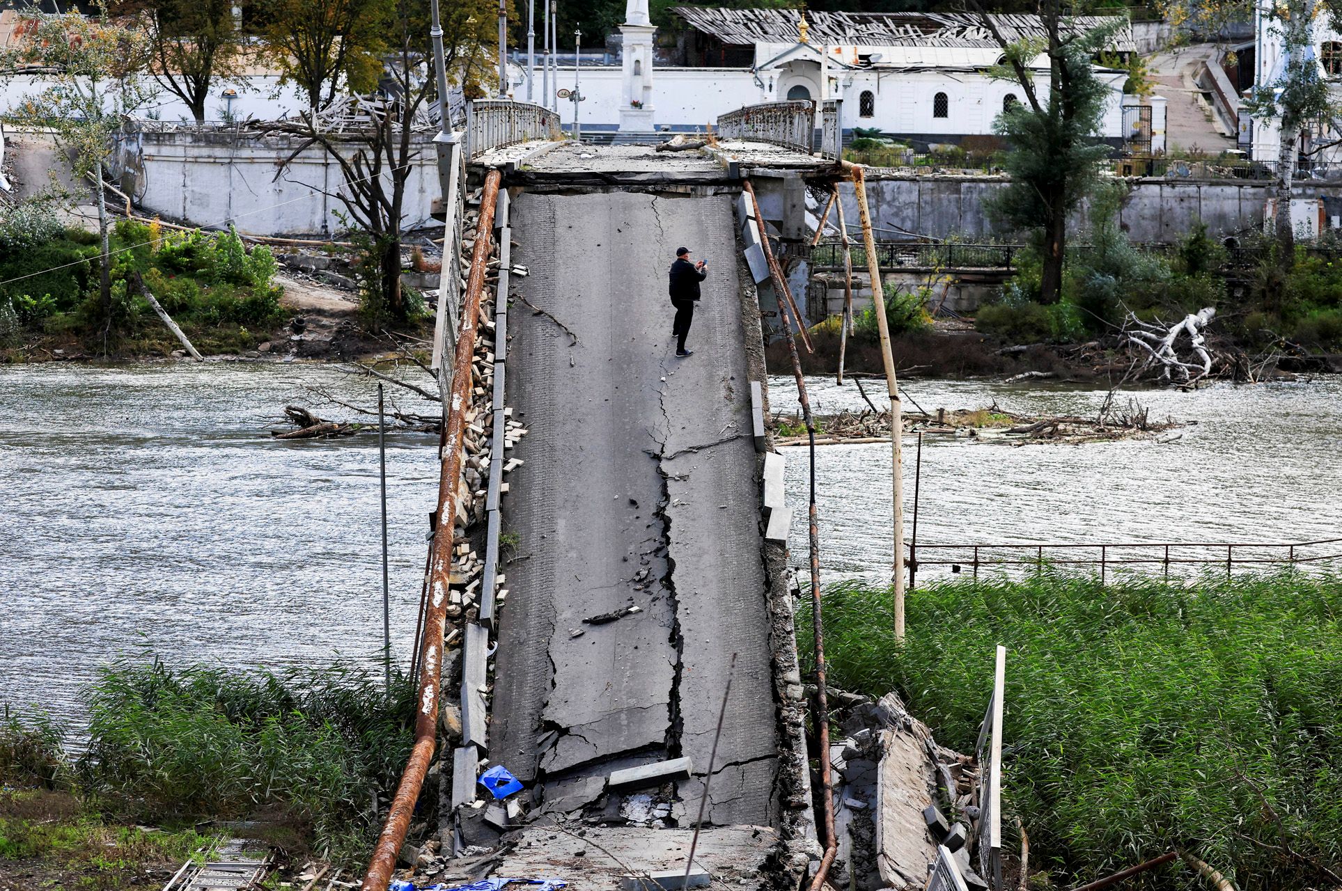 Atef Safadi / EPA / Scanpix / LETA Украинские военные на поврежденном в результате обстрелов мосту через реку Оскол в Купянске. Город, захваченный российскими войсками в первые дни войны, был освобожден 10 сентябряZohra Bensemra / Reuters / Scanpix / LETA Мужчина пытается поймать мобильную связь на разрушенном мосту через реку Северский Донец в Святогорске Донецкой области. Город был оккупирован войсками РФ 7 июня, но Святогорская лавра, расположенная на другом берегу Северского Донца, находилась под контролем украинских сил. ВСУ освободили Святогорск 12 сентябряFrancisco Seco / AP / Scanpix / LETA Украинские солдаты убирают куски металла с моста через Северский Донец в освобожденном ИзюмеAtef Safadi / EPA / Scanpix / LETA Уничтоженный мост через реку Оскол в КупянскеFrancisco Seco / AP / Scanpix / LETA Гражданские и военные автомобили пересекают Северский Донец по временному мосту в Изюме