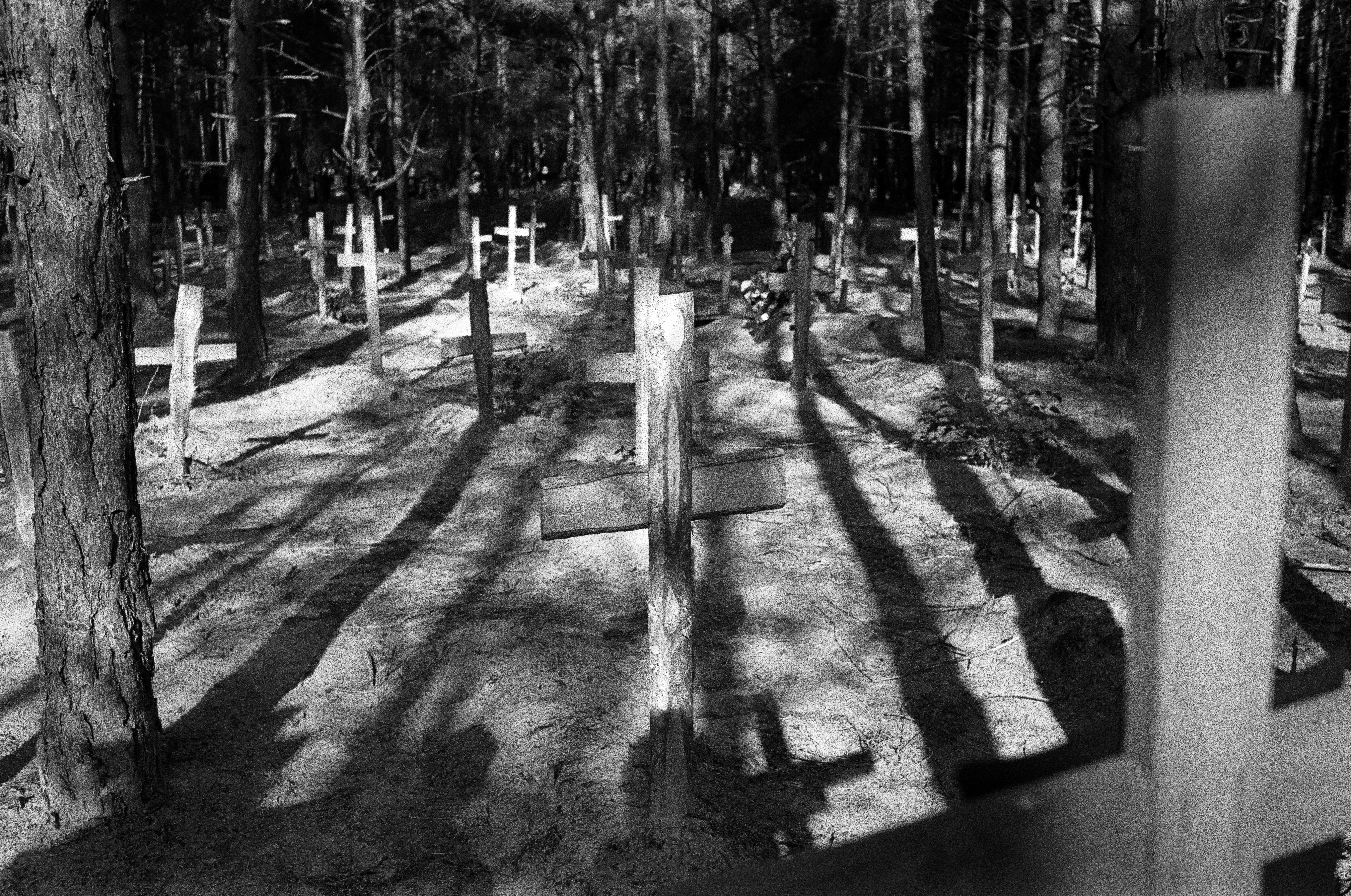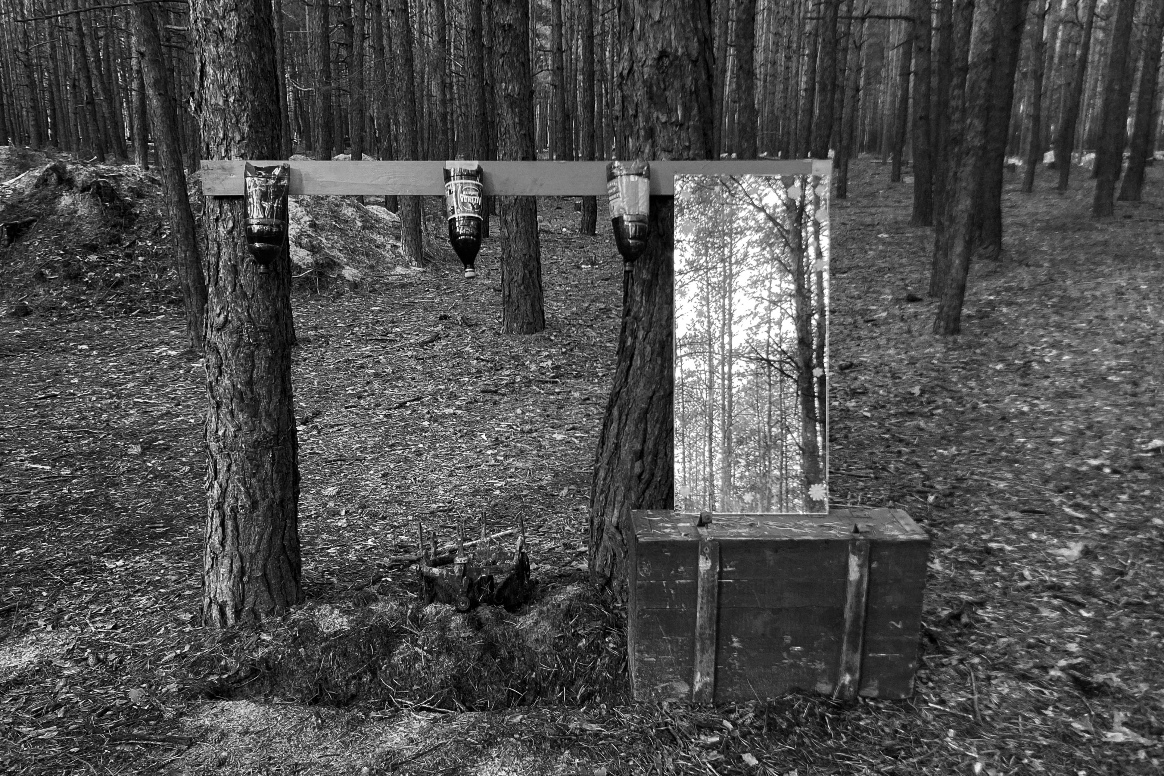 Со стороны Харькова город начинается с блокпоста и стелы с надписью "Изюм". Потом идет сосновый лес. В лесу несколько месяцев стояли незваные гости из "второй армии мира". Они оставили после себя разрытые тягачами и танками пространства, блиндажи из свежесрубленных деревьев, прокопанные в песке траншеи. Ну и элементы быта: три рукомойника, сооруженные из перевернутых полторашек от пива "Легенда Донбасса" с обрезанным дном. Рядом, на ящике для боеприпасов, большое зеркало с наклеенными бумажными снежинками по краям. На ветке до сих пор болтаются чьи-то походные штаны, неподалеку рассыпаны желто-зеленые карамельки и пакетики с чаем – идиллическая картина, как будто турпоход... Правда, к сосне прибита укупорка от порохового заряда для танка, простреленная в нескольких местах, судя по всему, на ней тренировались в меткости. И повсюду деревянные ящики цвета хаки для снарядов и какие-то серые металлические поддоны. И заказчик написан на поддонах – Министерство обороны РФ, и получатель – военная часть 42734 в Саратовской области. Идиллия на этом заканчивается.