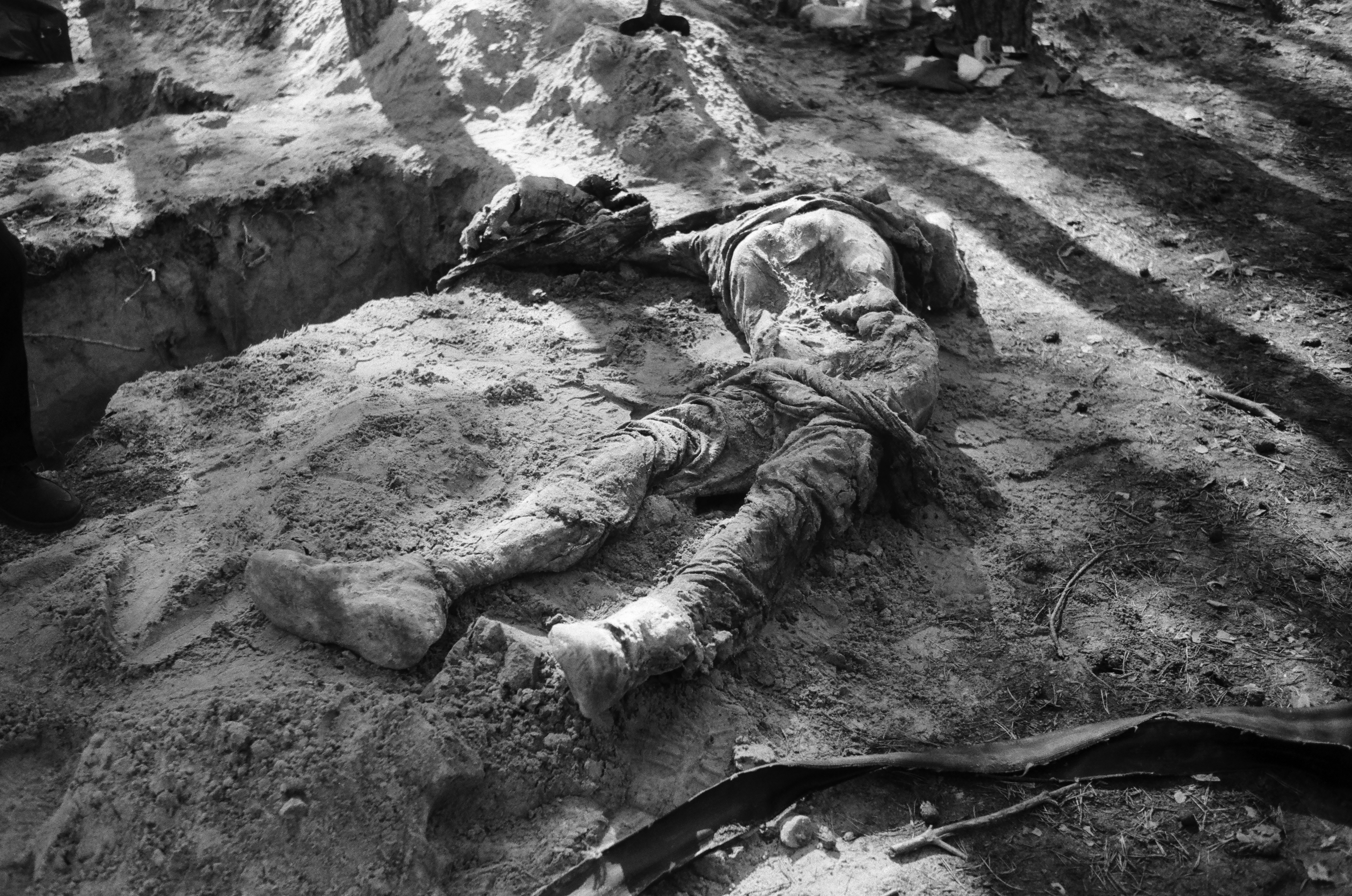 Кажется, что после каждого копка лопаты, после каждого выброса земли из могилы произойдет что-то крайне важное. Кажется, что мы узнаем, разгадаем тайну чьей-то жизни или смерти. Но спасатели просто достают очередное тело, завернутое в одеяло, ковер, в уже сгнивший пододеяльник. Сотрудники полиции и следователи осматривают покойного, делают свои замеры. Родственники должны будут пройти через мучительную процедуру опознания и потом захоранивать своих близких снова… Приходит мужчина, бывший накануне на опознании двоих маленьких детей, которые погибли вместе с родителями. Я не нахожу сил, чтобы его о чем-то спросить, да и о чем спрашивать…