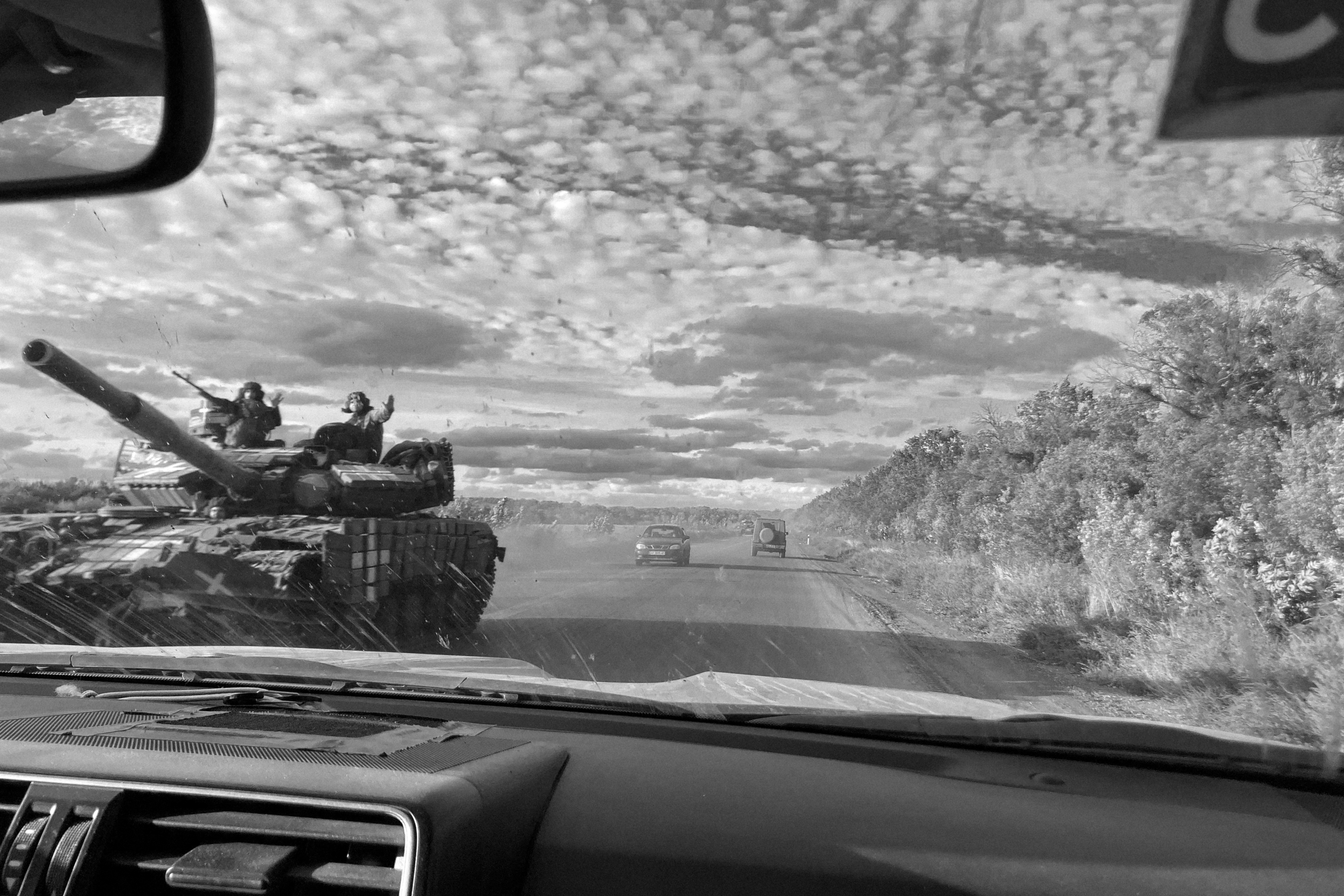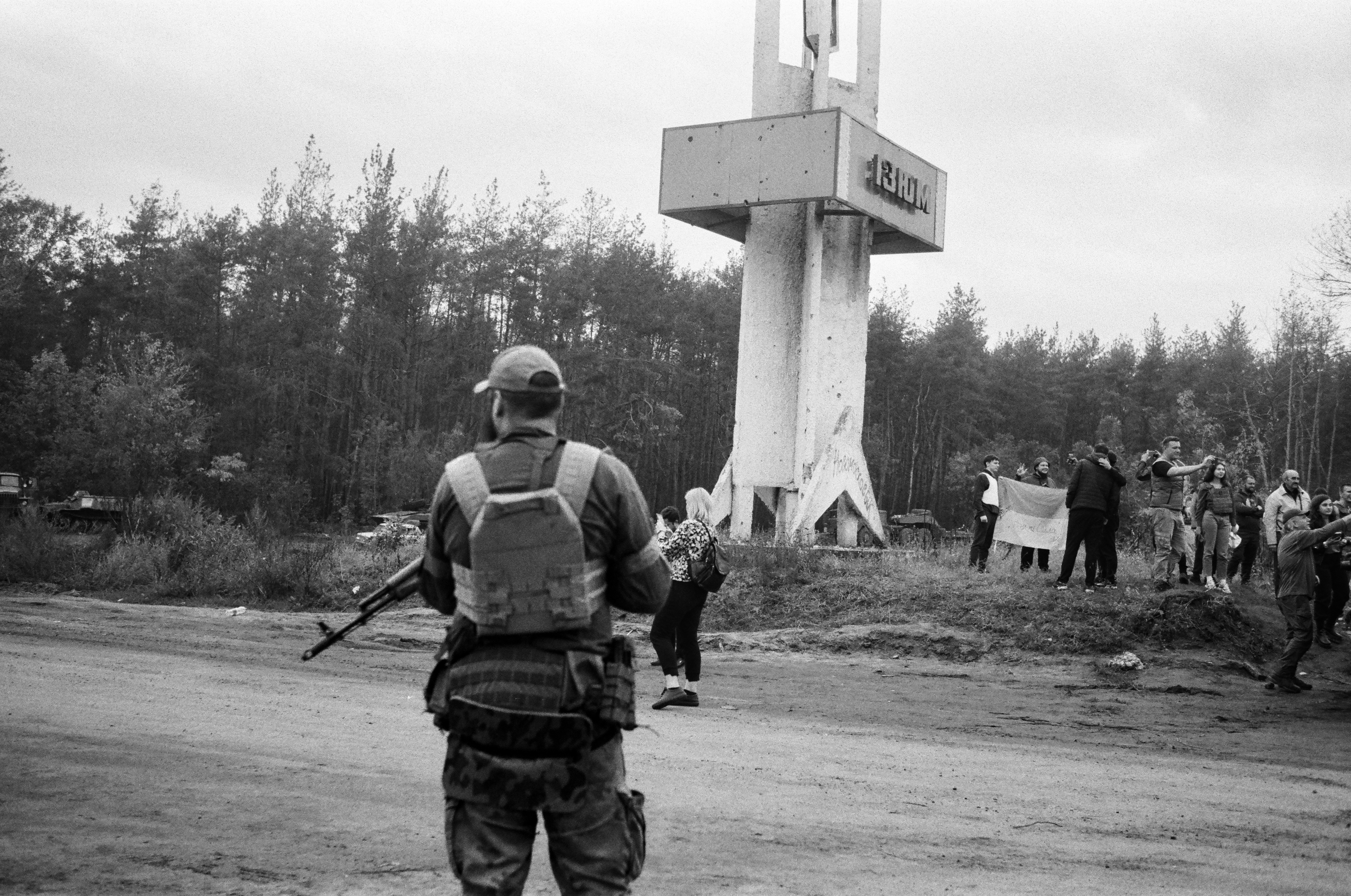 Мимо кладбища постоянно провозят трофейную российскую технику, и повсюду на подъезде к Изюму на обочинах дорог встречаются сожженные российские танки с вылезающей где-нибудь иностранной буквой Z. Украинская военная техника сразу узнаваема по белому тонкому кресту на броне, техники очень много, и все гражданские всегда ее радостно приветствуют.