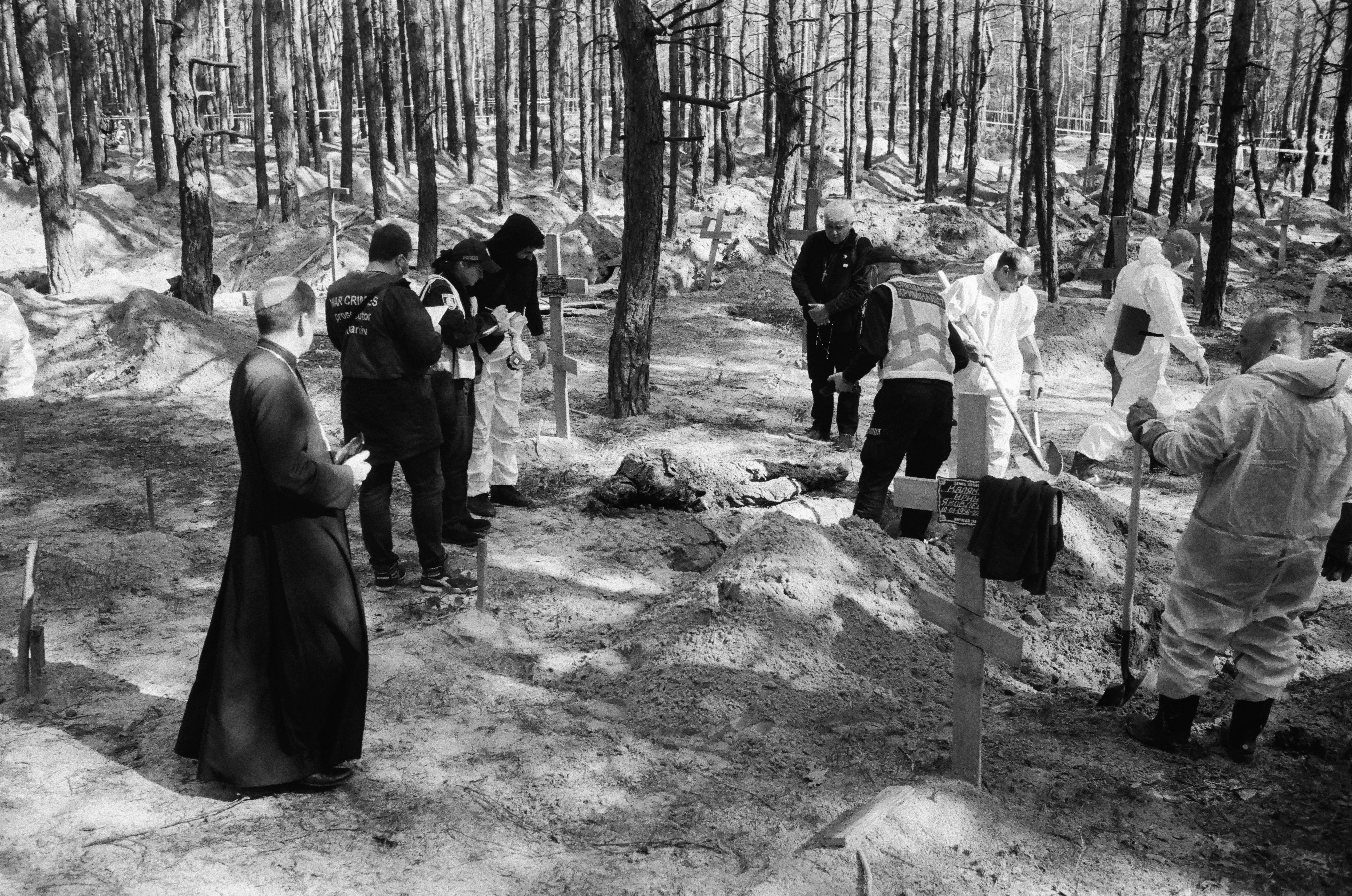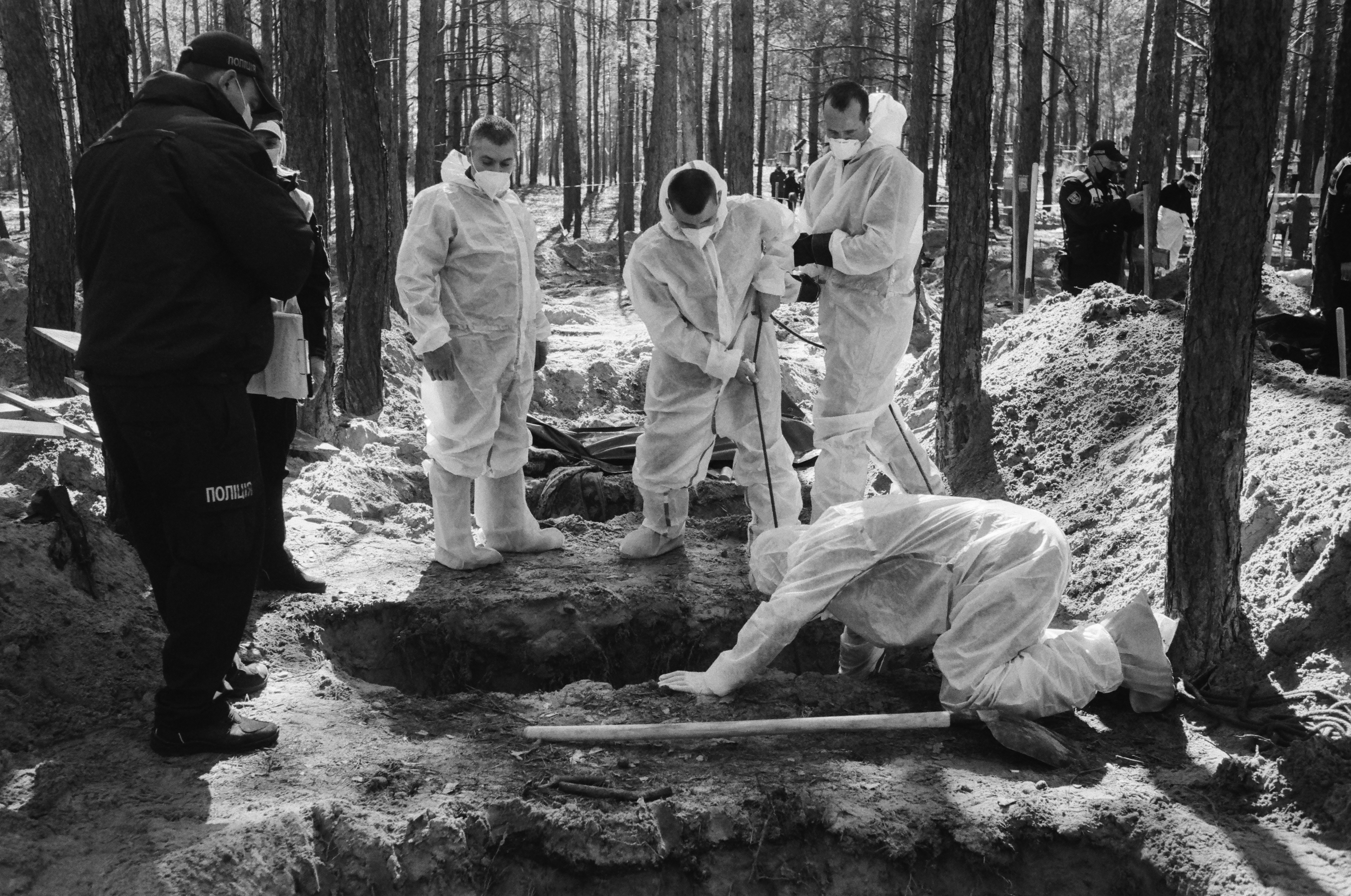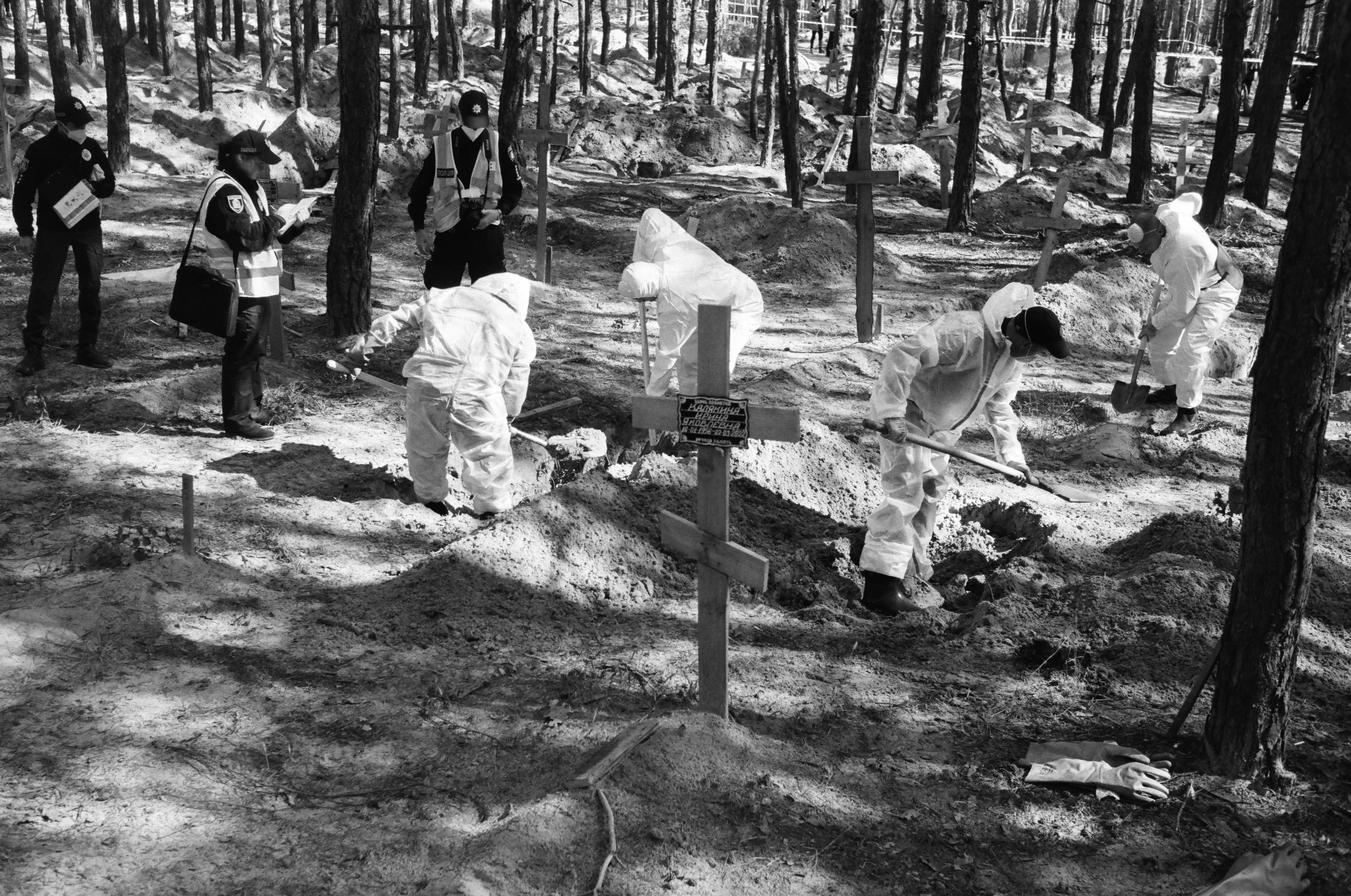 Изюм. сентябрь 2022. Кладбище на улице Шекспира. Эксгумация останков людей, погибших и умерших за время российской оккупации