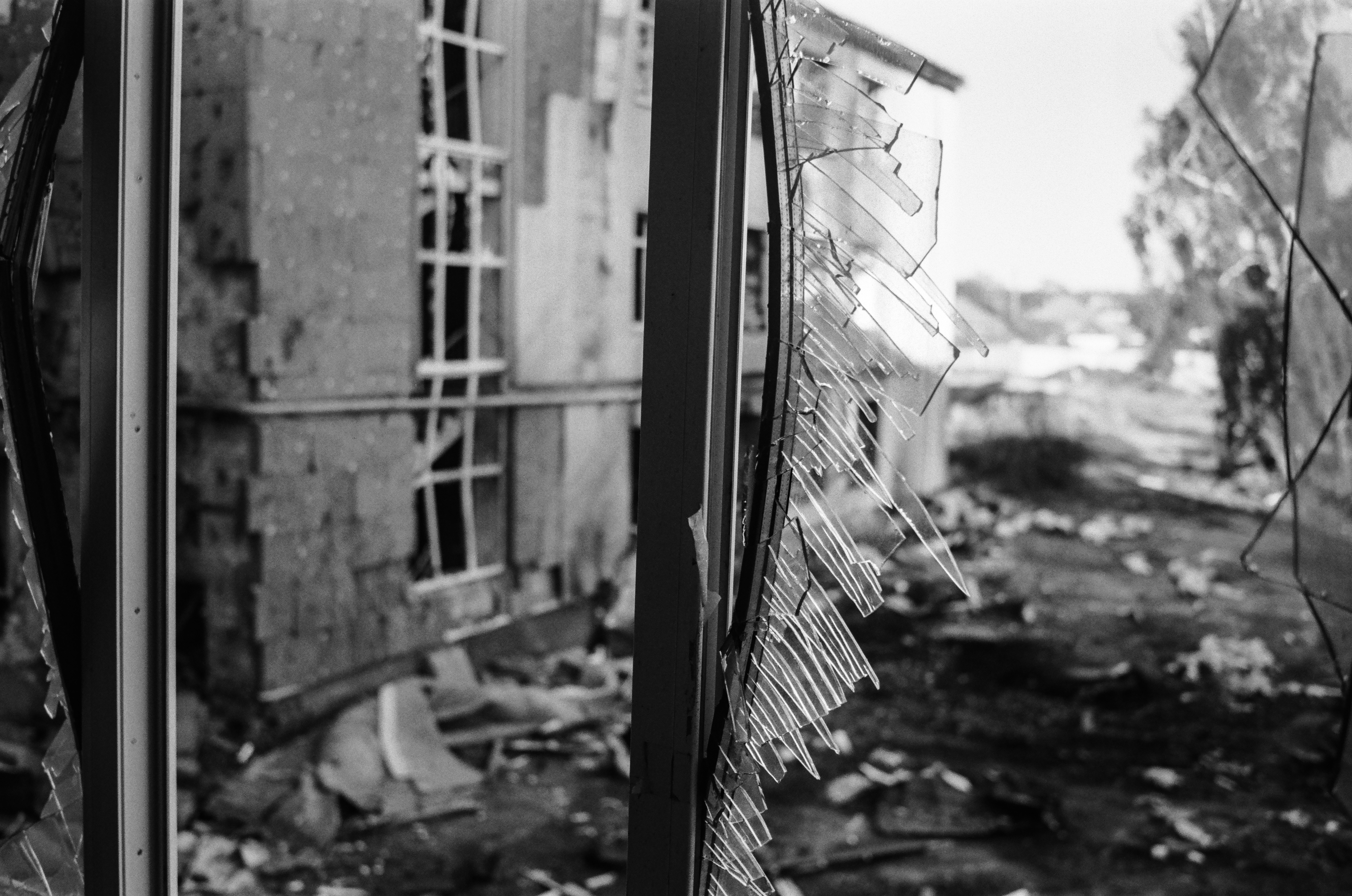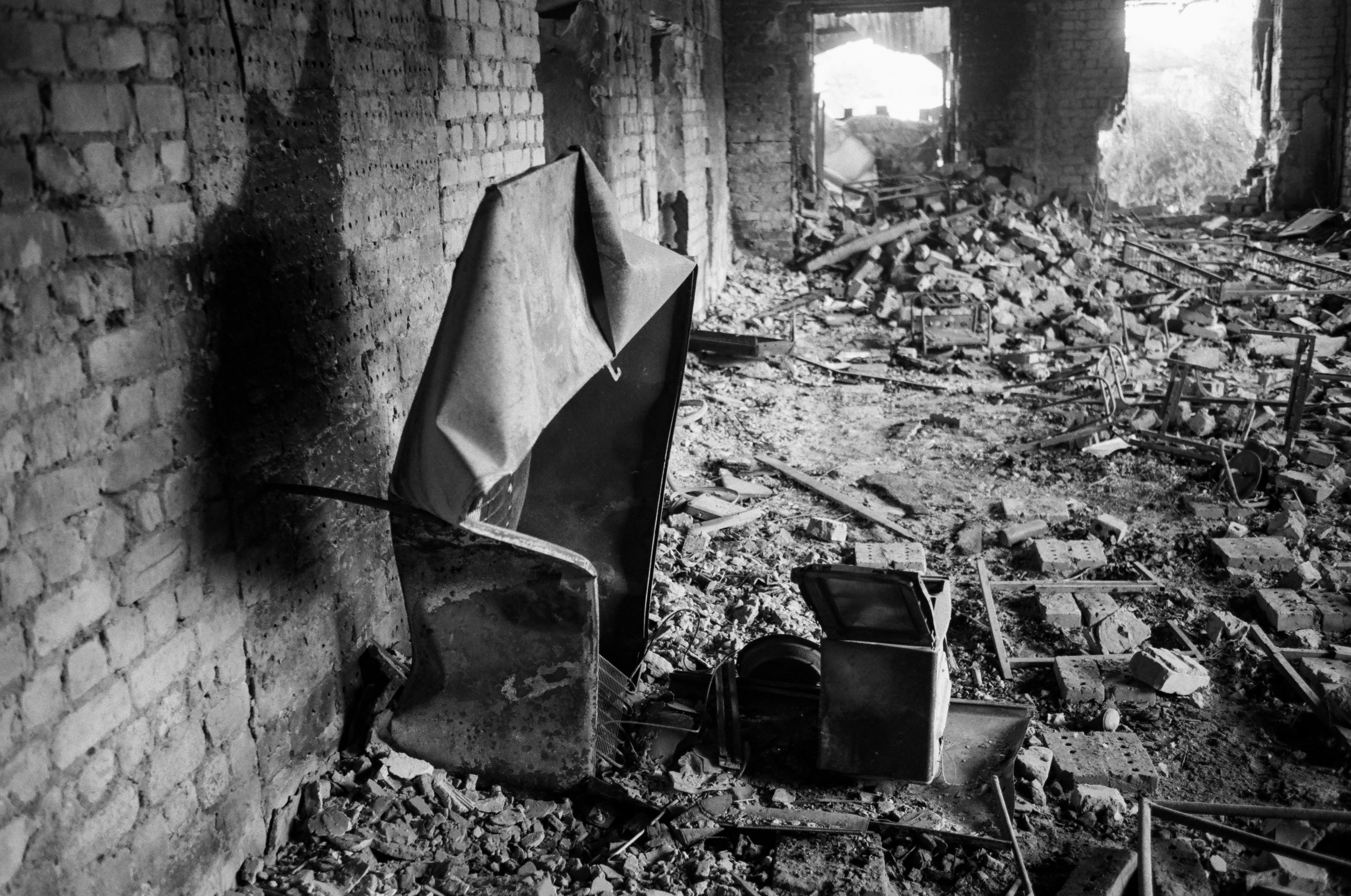 Сам город изуродован нещадно. Есть улицы, которых больше нет, они полностью превращены в руины: проезжая часть в выбоинах от снарядов, завалена обломками строений, стволами и ветками посеченных деревьев. Следы больших и малых пожаров, черные языки копоти повсюду. Обстрелы в некоторых районах были настолько неистовы, что люди сутками не могли даже высунуться из подвалов. В переулке Лубченко (бывший Ленинградский) мне показывают целое ведро осколков, собранных на небольшом участке возле дома. Каждый из них мог ранить или убить человека.