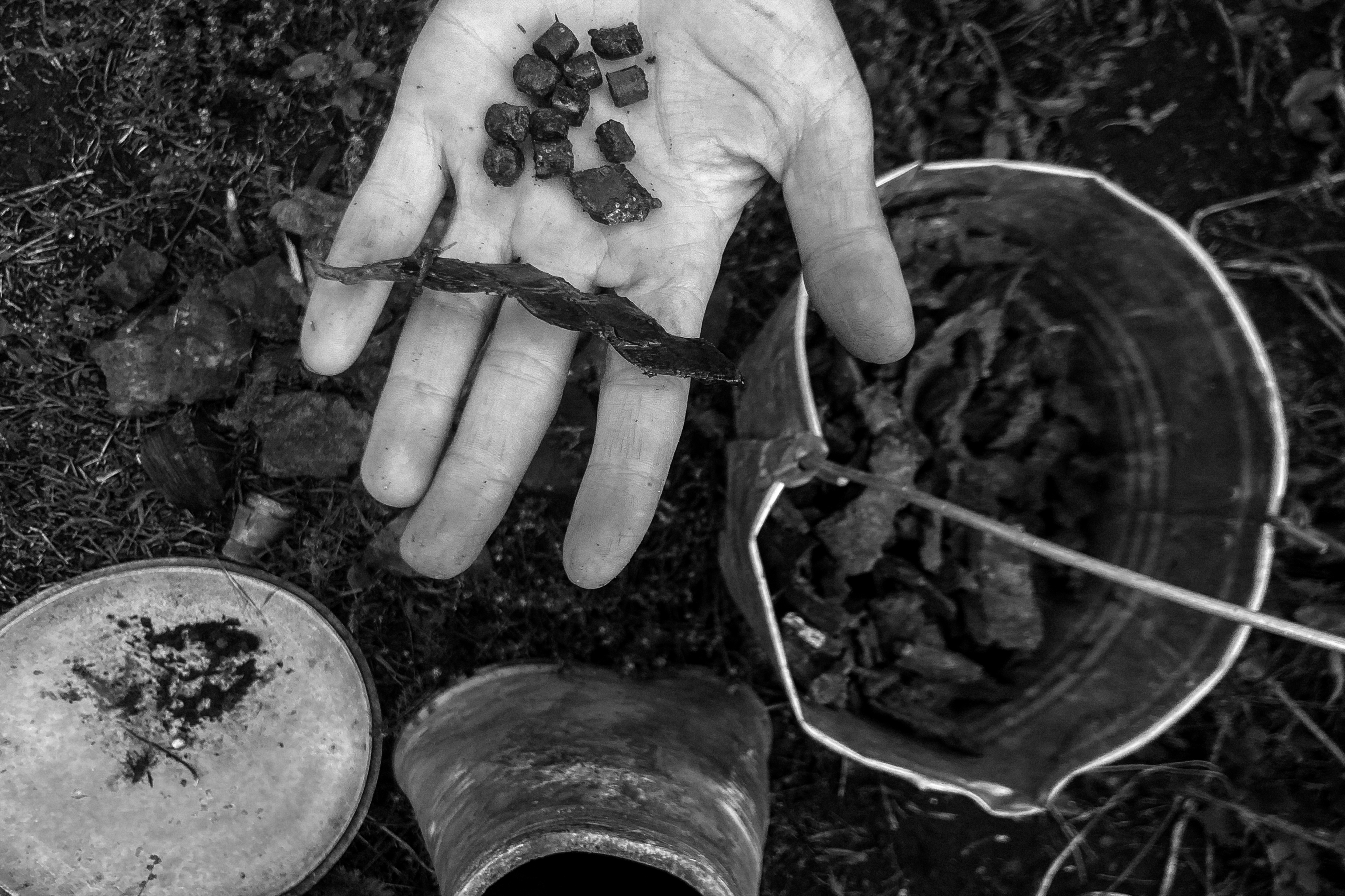 – У нас тут в холодильниках были запасы, собрали все свои банки, но это через какое-то время закончилось. Тогда мы стали кашу на костре варить уже без ничего, у кого какая крупа была, оладики на костерчике вместо хлебушка пекли, это даже приятно было. Русские зашли еще в марте, а только в мае первый раз дали гуманитарку – по две банки тушенки, две банки консервов, спагетти, подсолнечное масло, крупу. Солдаты нас немножко подкармливали ЛНРовцы, пайки свои пакованные иногда давали.
