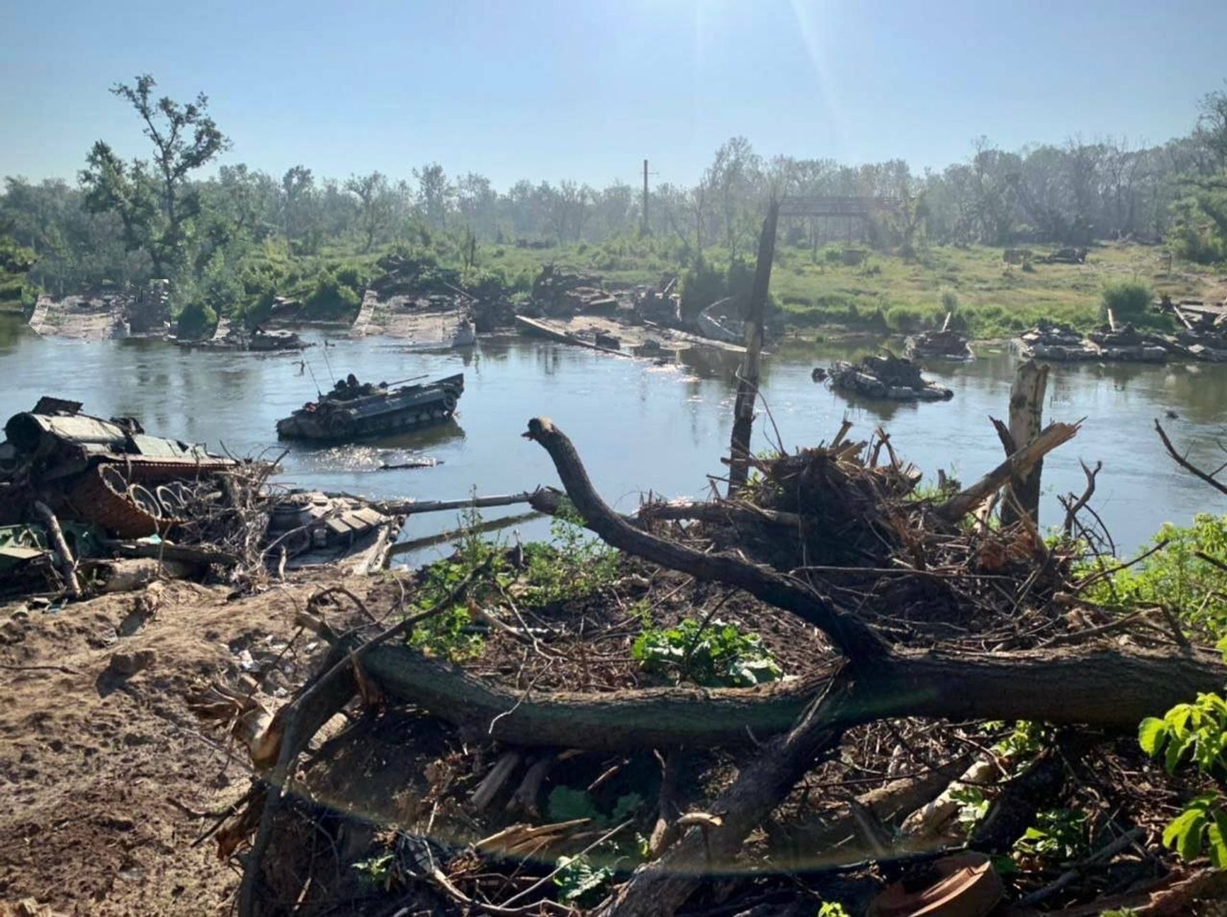 Беспомощность российских танков перед противотанковыми средствами (Javelin, NLAW) подчеркивается попытками кустарно добронировать машины бревнами, мешками с песком или камнями, металлическими решетками. Деревянная защита встречается также на другой бронетехнике и грузовиках, а динамическую защиту, предназначенную для танков, размещают на БТР и бронеавтомобилях.