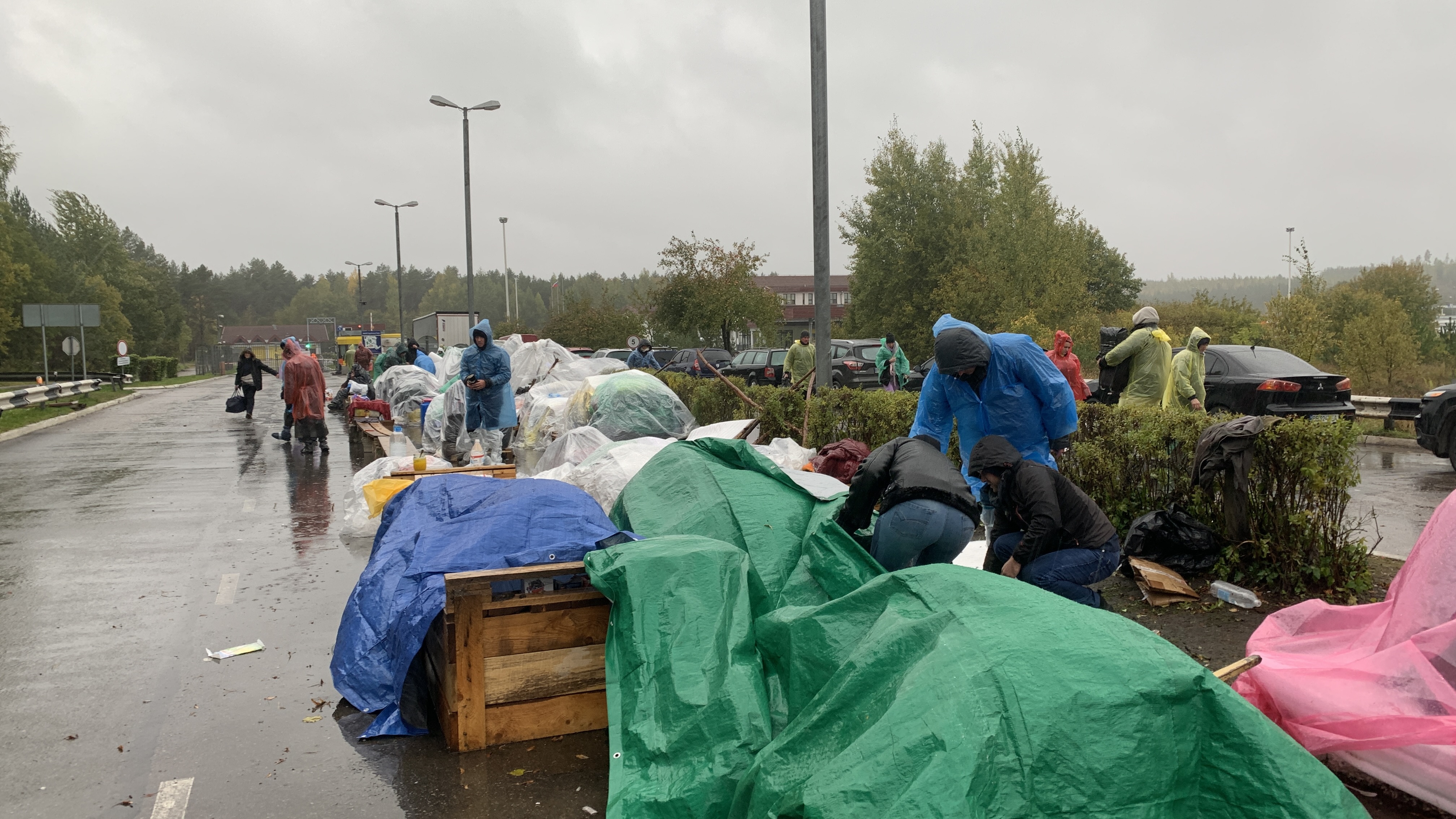 – Россия позиционирует себя таким (великим) государством, но с такой границей, – продолжает Леонид. – Ничего нет, люди под дождем. Это же государственная граница! Ей должны такое внимание уделять, а мы стоим как бомжи. Иностранные граждане.