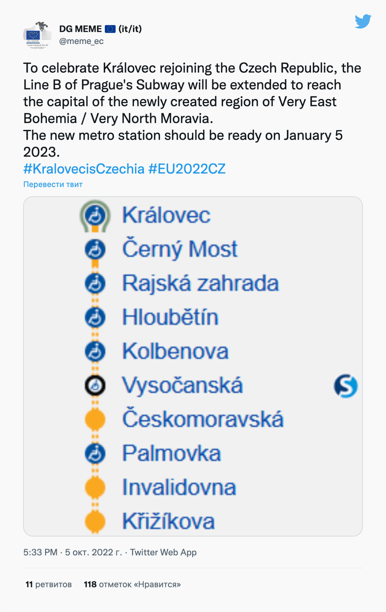 А линия «Б» пражского метро теперь проведена до нового региона страны Очень Восточная Богемия (или Очень Северная Моравия)