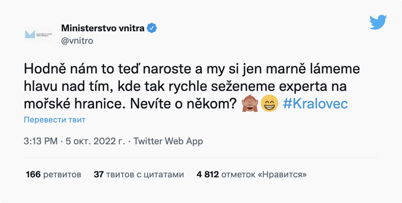 А 4 октября в аккаунте @KralovecCzechia в твиттере появилось первое сообщение: