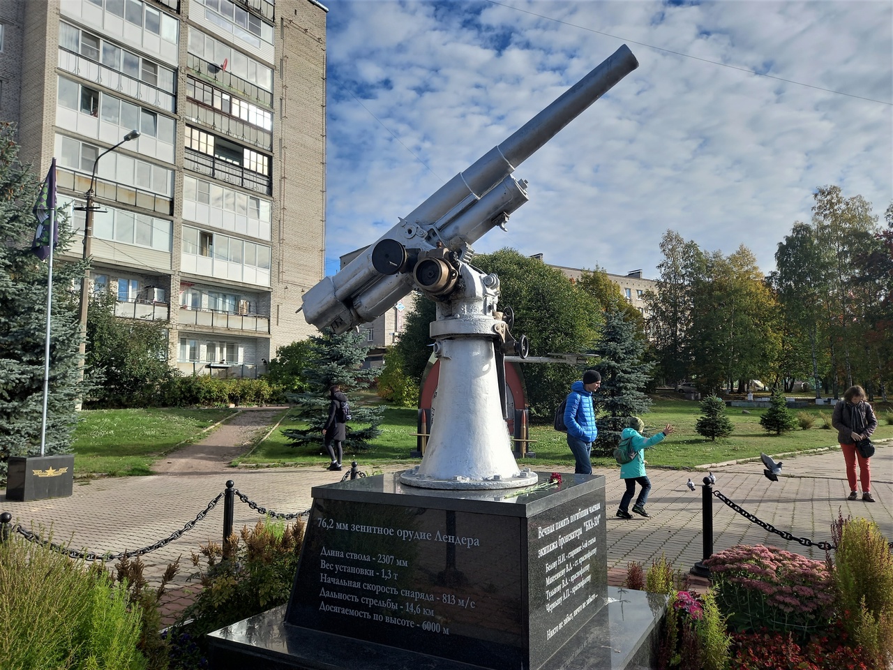 Зенитное орудие, снятое с бронекатера времен войны. Одно из первых, которые могли стрелять по самолетам. Применялось еще в Первую мировую войну, когда самолеты были довольно медленные и неуклюжие. В годы Второй мировой войны оно скорее стреляло по наземным целям.