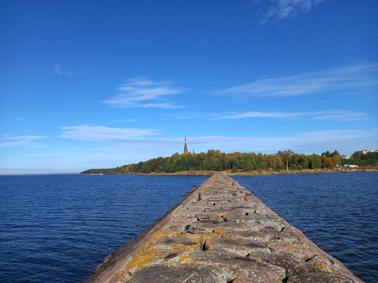 С мола видно шпиль кирхи.