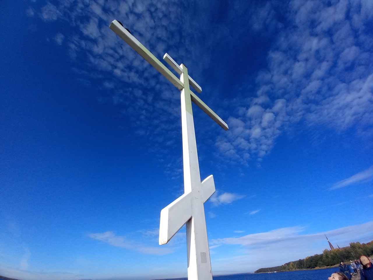 В конце мола стоит православный крест.
