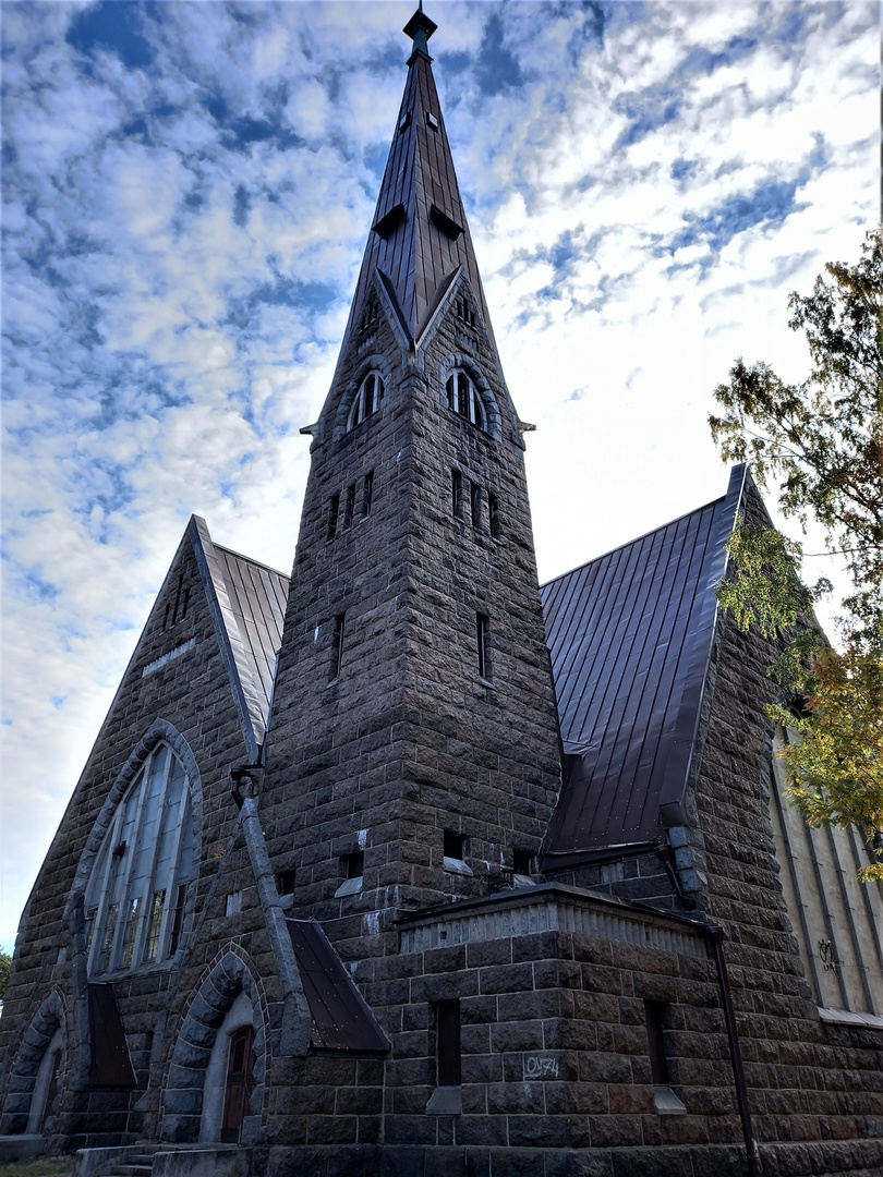 Эта кирха вроде бы обычная, напоминает другие творения Стейнбека, но огромная башня колокольни с высоченным стилем превращает ее в нечто грандиозное! Когда стоишь рядом, то кажется, что шпиль достает до самого неба! Высота шпиля над землей — 60 м!