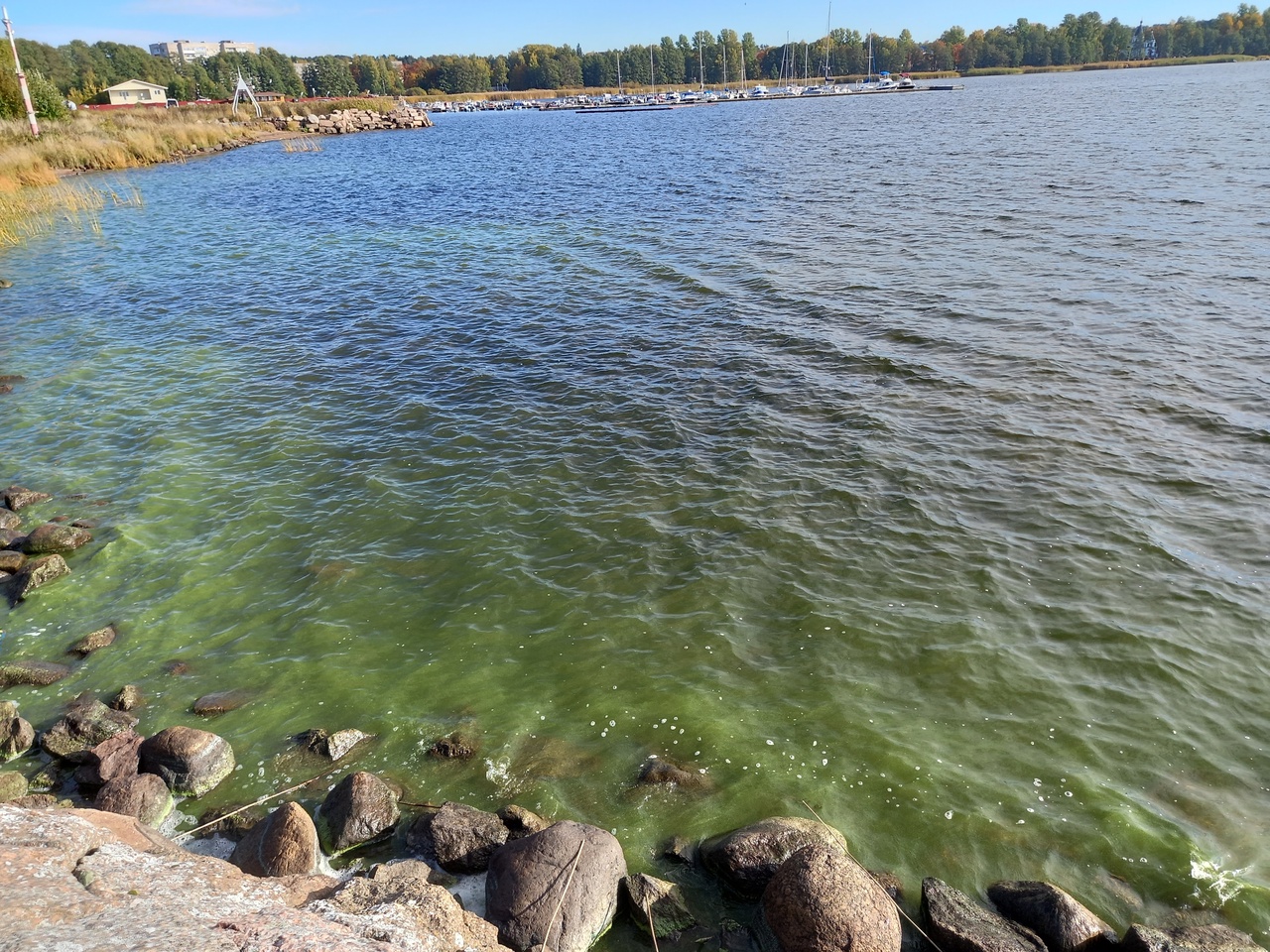 Вода с разных сторон от мола совершенно разная. Слева она ярко-зеленая и мутная. Сильно зацвела.