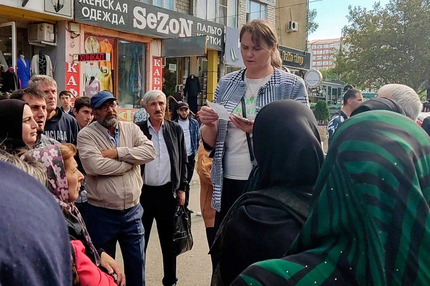 Там была девочка активная, которая за машину хваталась. Ее мы два раза отбили от ментов, женщины кричали ей: «Уйди отсюда!» Прямо выкидывали. Понимали, что с нами тяжелее разобраться, очень сильное будет возмущение, если покрытую взрослую женщину тащат в бобик и у нее задралось платье, платок с головы упал. Это все же Дагестан.