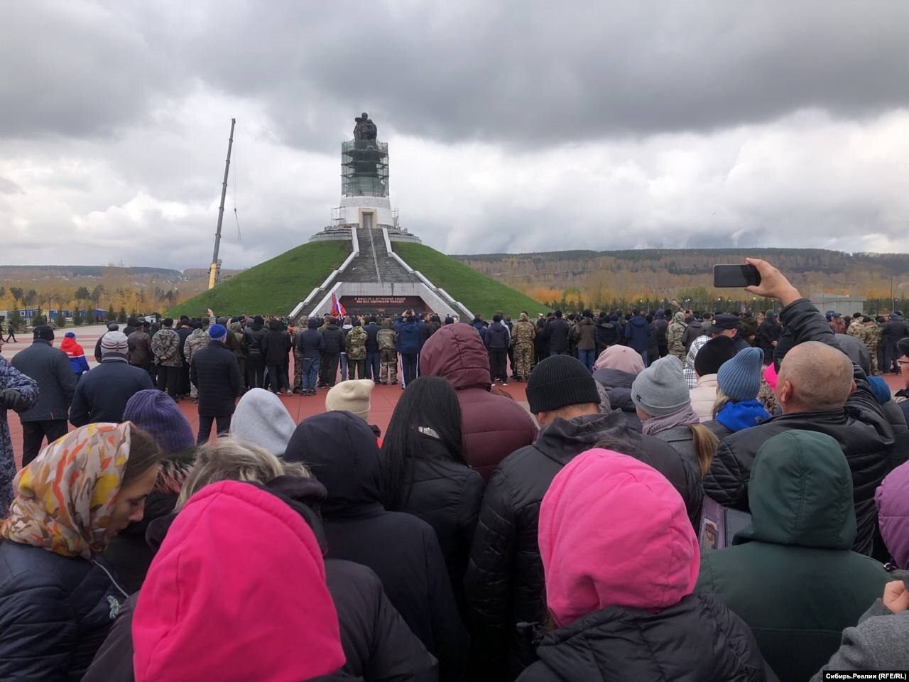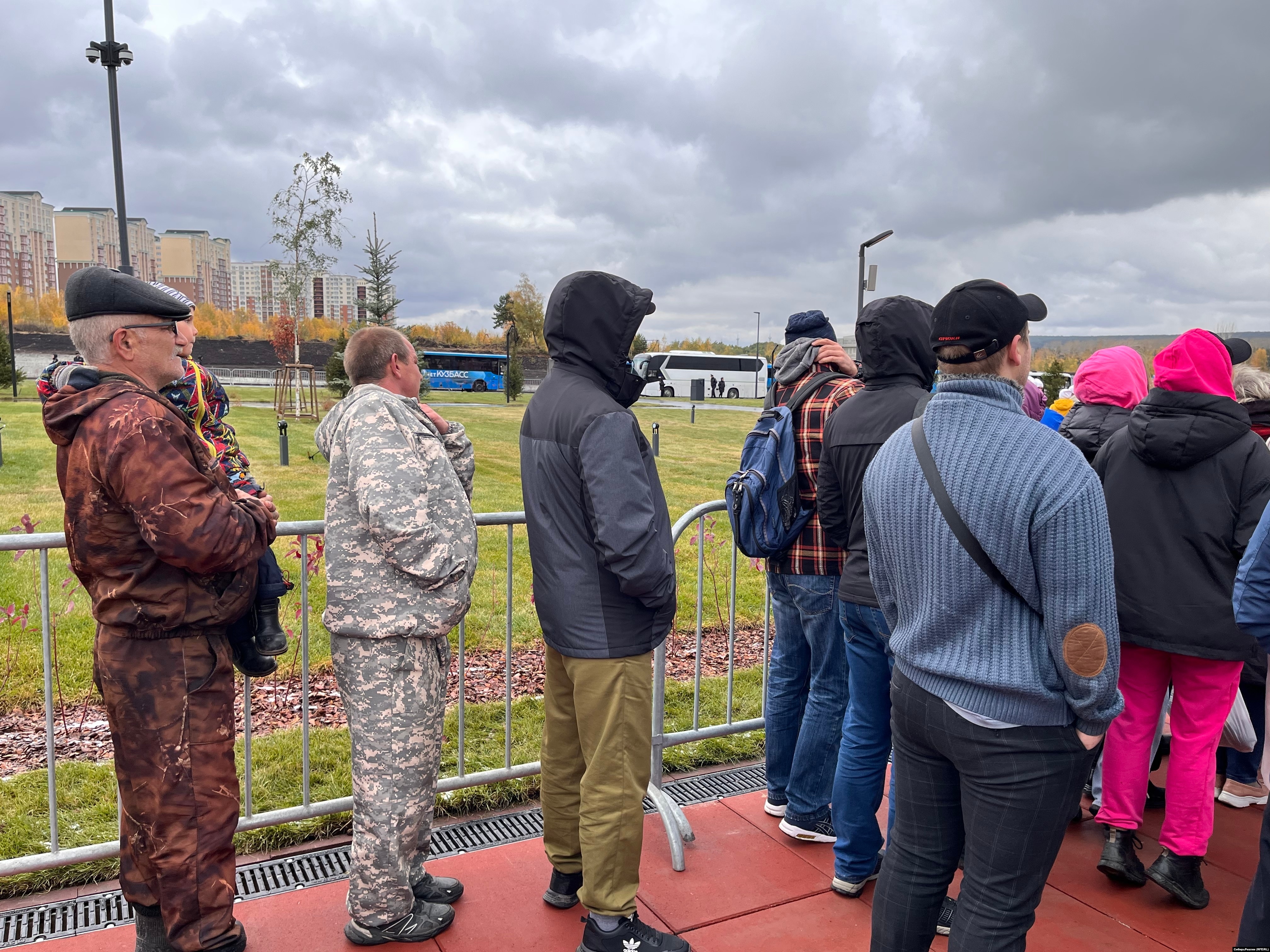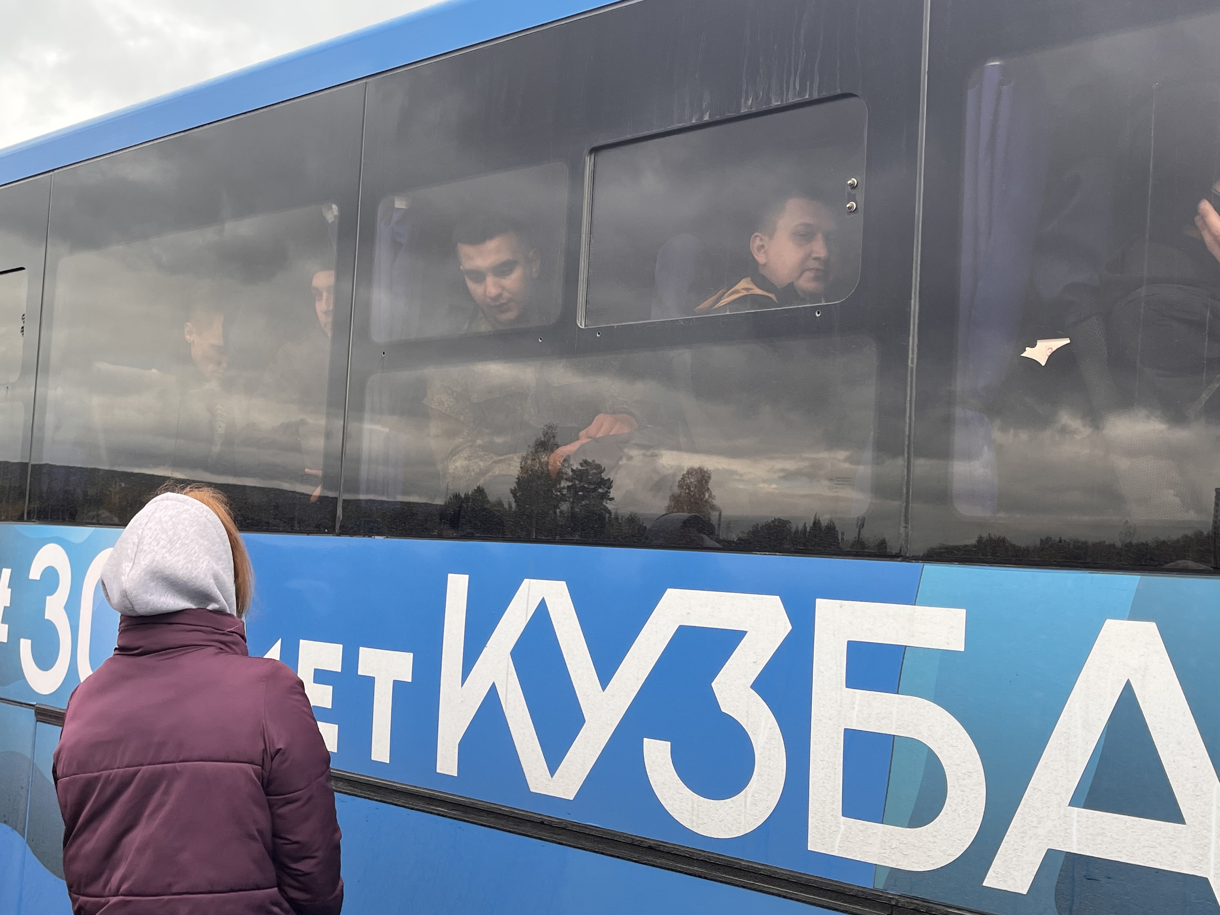 С 27 сентября каждый день в 5–7 утра из городов Кузбасса в Кемерово выезжают автобусы с мобилизованными. В областном военкомате они подписывают документы, затем торжественное построение возле памятника "Воину-освободителю".