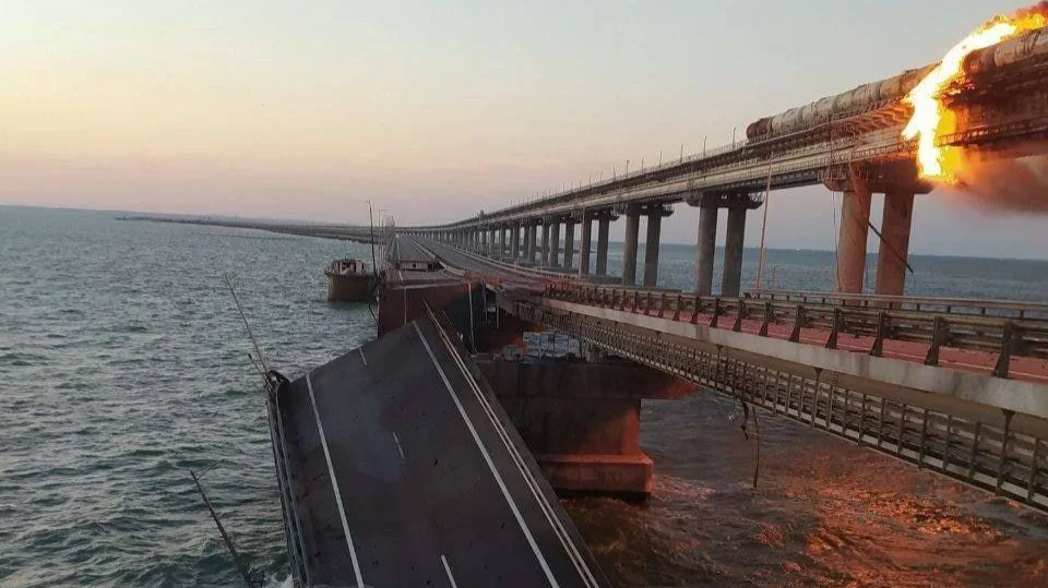 Рано утром 8 октября на Крымском мосту произошел взрыв, в результате которого обрушилось автомобильное полотно и загорелся поезд, перевозивший горючие материалы. Власти Крыма не могут решить, ограничивать ли продажу продуктов и бензина, и отменяют поезда и автобусные рейсы в Крым. Киев же публикует видео, на котором кадры горящего моста совмещены с записью, как Мерилин Монро поет «С днем рождения, мистер президент».