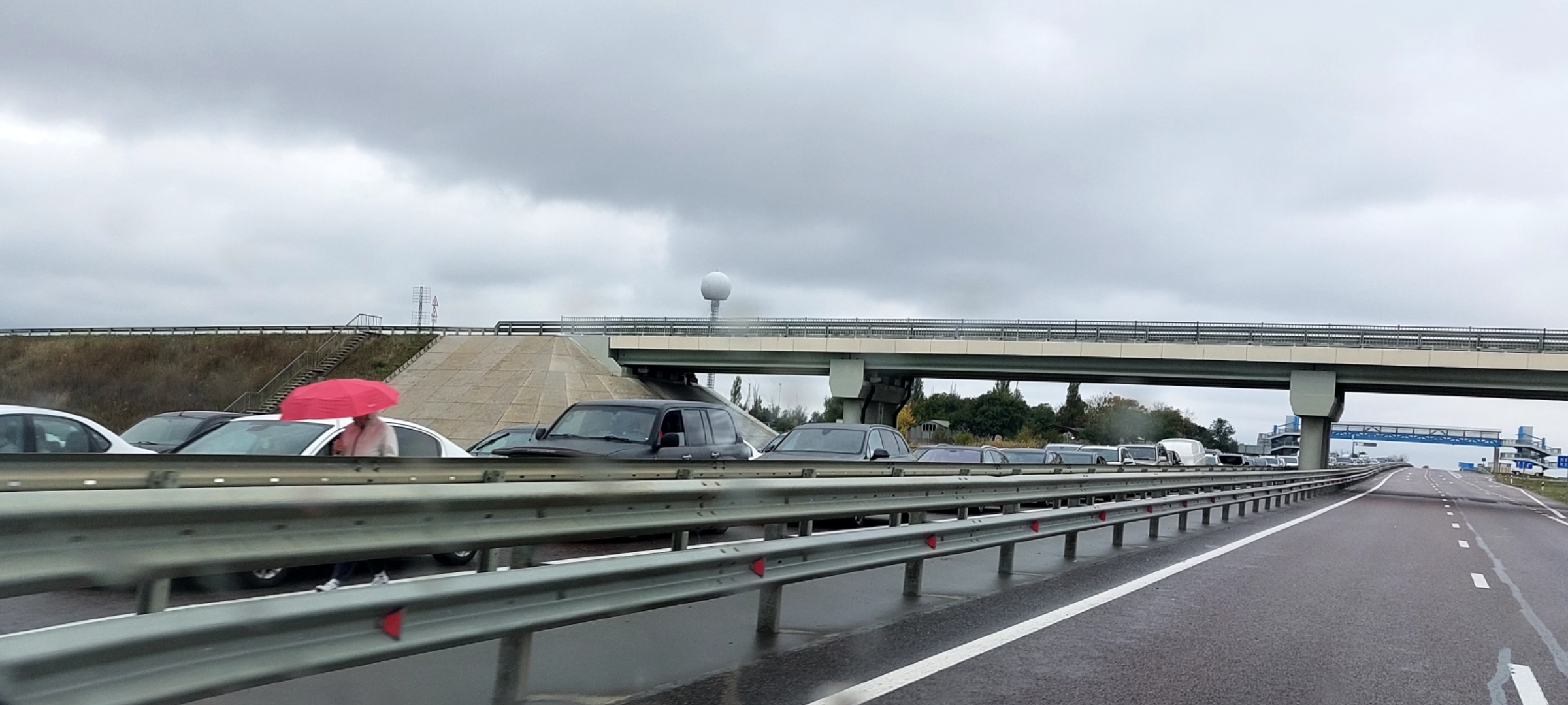Но уже в воскресенье ситуация изменилась, и трасса «Таврида» на въезде в Керчь оказалась плотно забита транспортом почти на протяжении 10 километров.