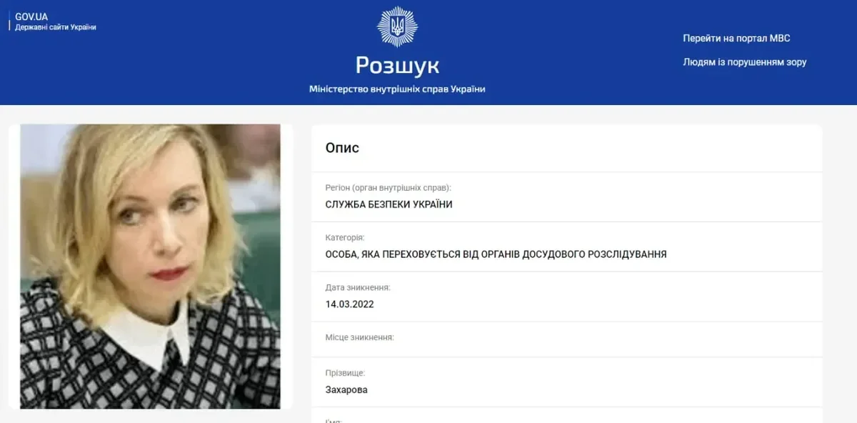 The Security Service of Ukraine (SBU) has put out an arrest warrant for former Russian president Dmitry Medvedev and Foreign Ministry spokeswoman Maria Zakharova. They are accused of infringing upon the territorial integrity of Ukraine, the country’s interior ministry database says.