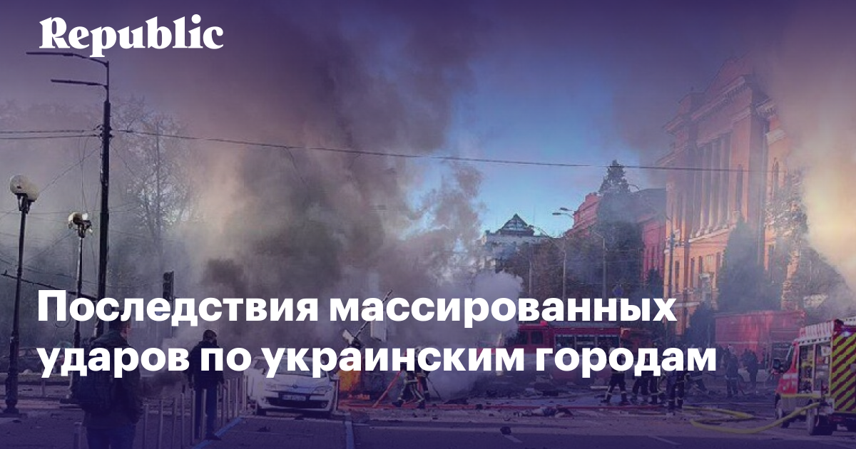 Украинские чиновники сообщают о серьезных повреждениях объектов гражданской и критической инфраструктуры в результате сегодняшних ударов со стороны России. К 11 часам утра (мск) известно о трех волнах массированных обстрелов, под которые попали Киев, Львов, Днепр, Житомир, Хмельницкий, Тернополь, Кривой Рог и другие крупные города страны. Это произошло после взрыва, случившегося 8 октября на Крымском мосту.