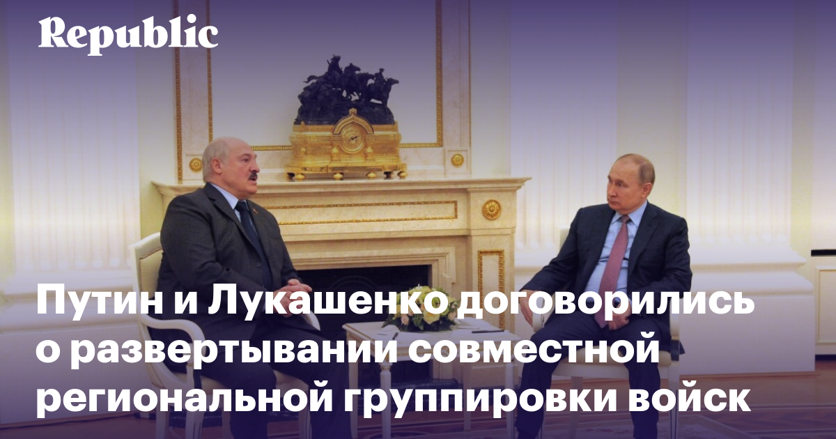 Президенты России и Беларуси Владимир Путин и Александр Лукашенко договорились о развертывании совместной региональной группировки войск для продолжения войны в Украине. Об этом сообщает белорусское государственное агентство «Белта».